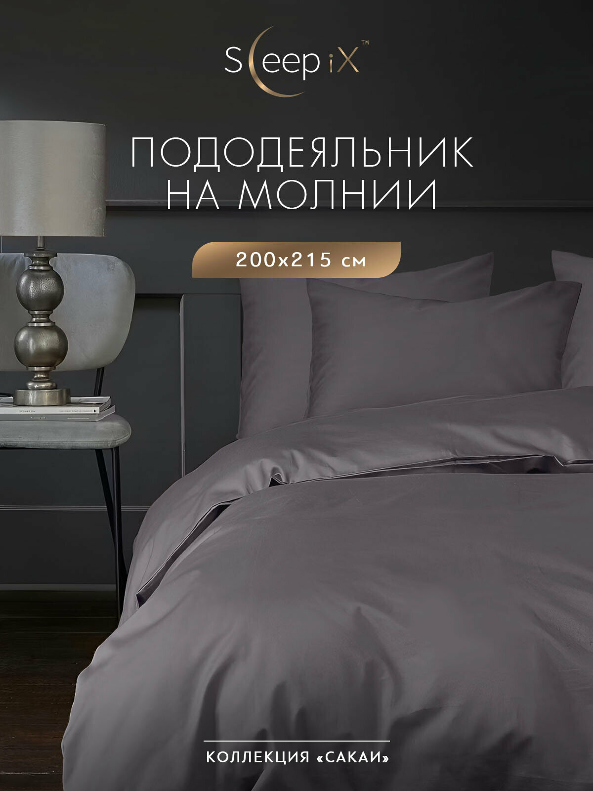 SleepIX Пододеяльник на молнии полуторный "Сакаи" перкаль, хлопок, 145x205, темно-серый