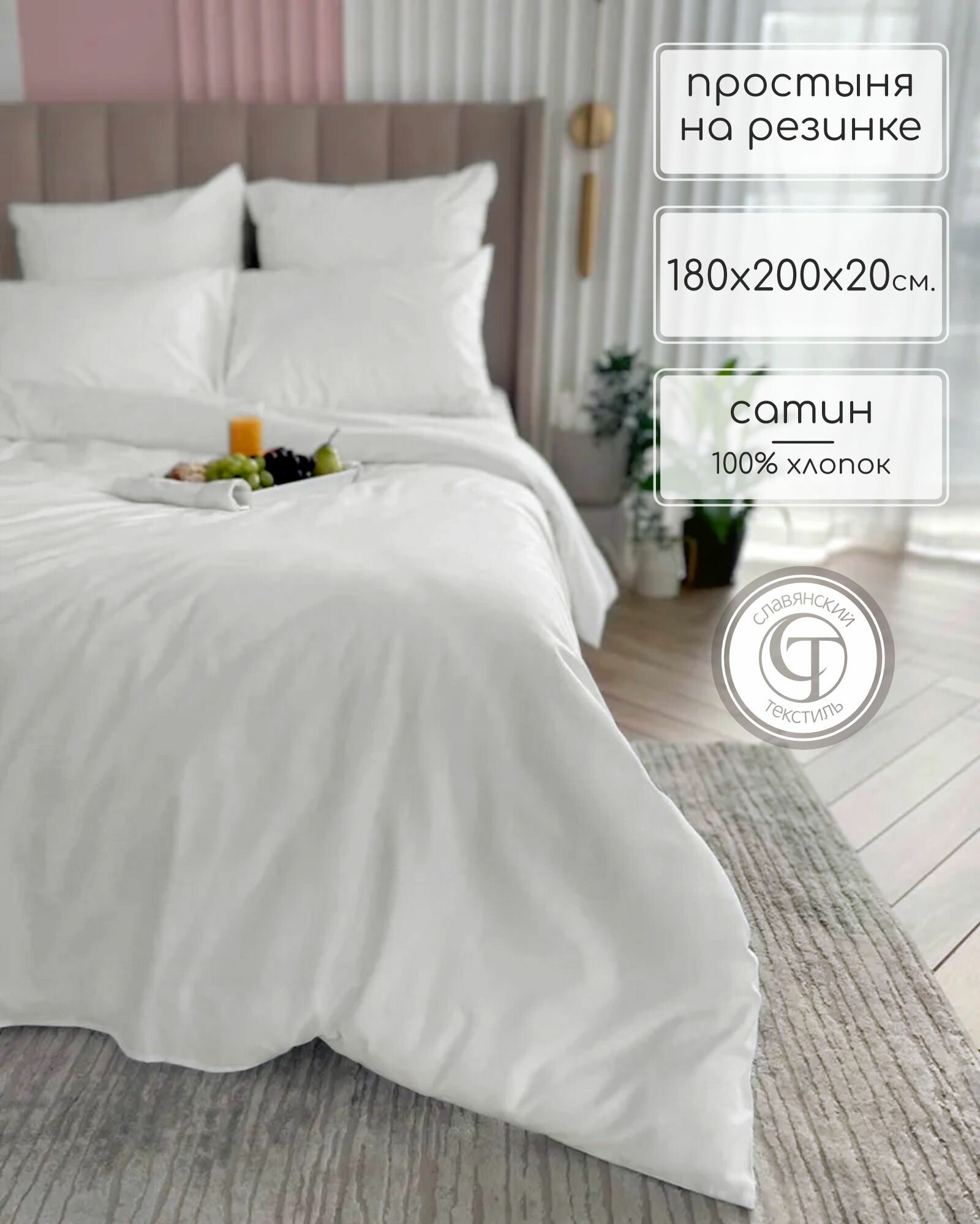 Купить Простыня на резинке "Classic" 180х200см сатин, слоновая кость