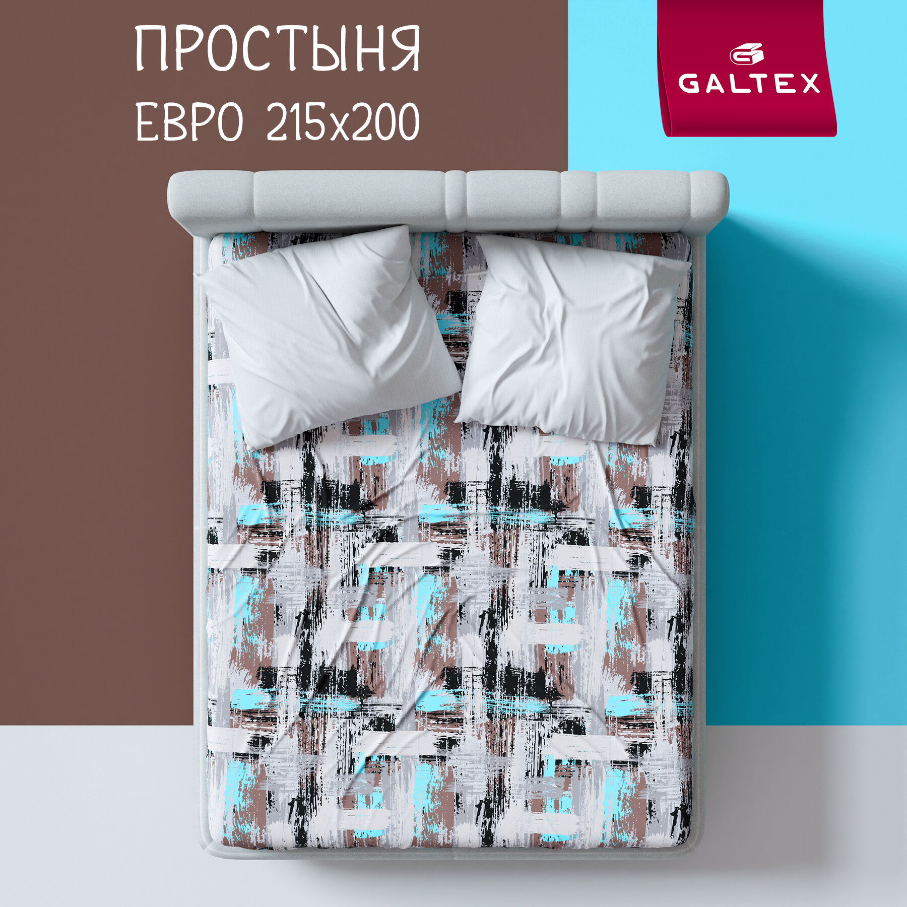 Простыня Евро 200х215 Galtex Нежность поплин Гранж бирюзовый интересное: