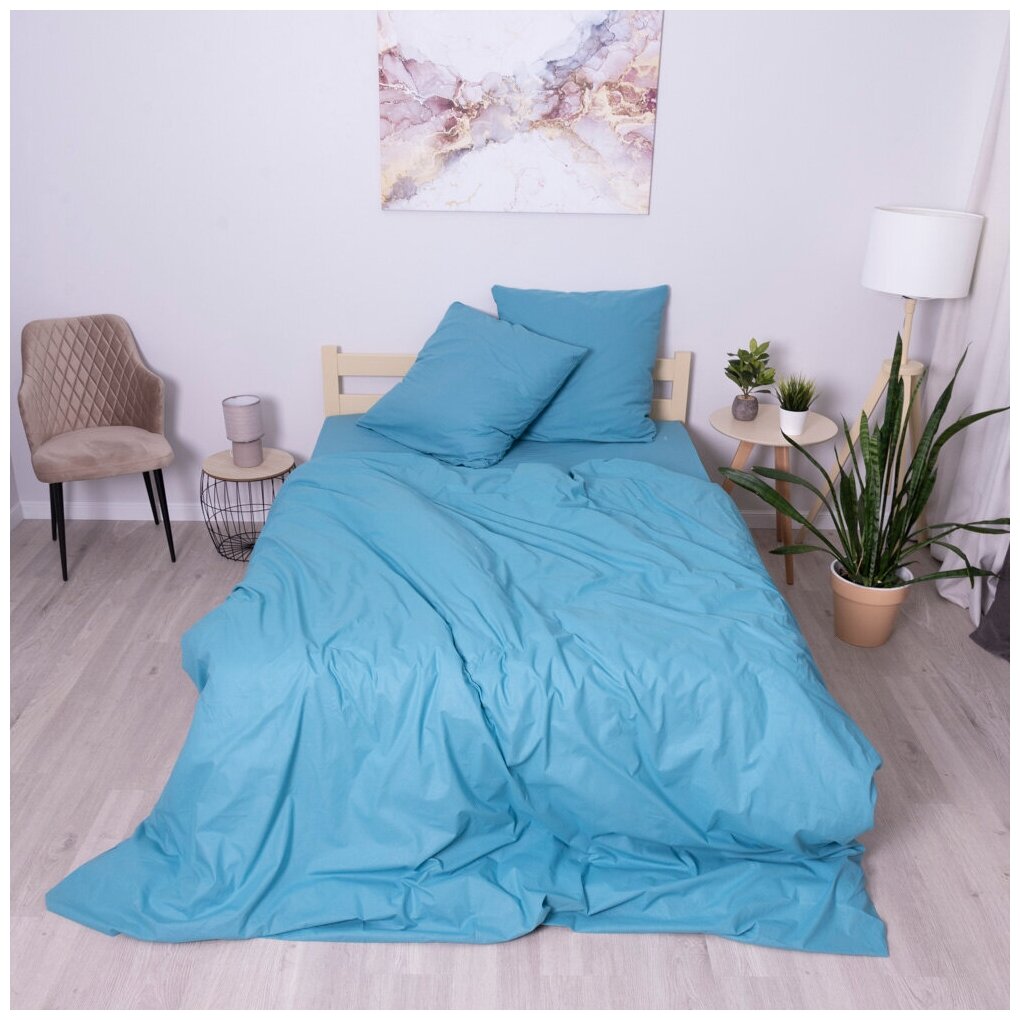 Простыня Вселенная текстиля, Поплин, Хлопок, цвет Тиффани, Евро (240х220 см)