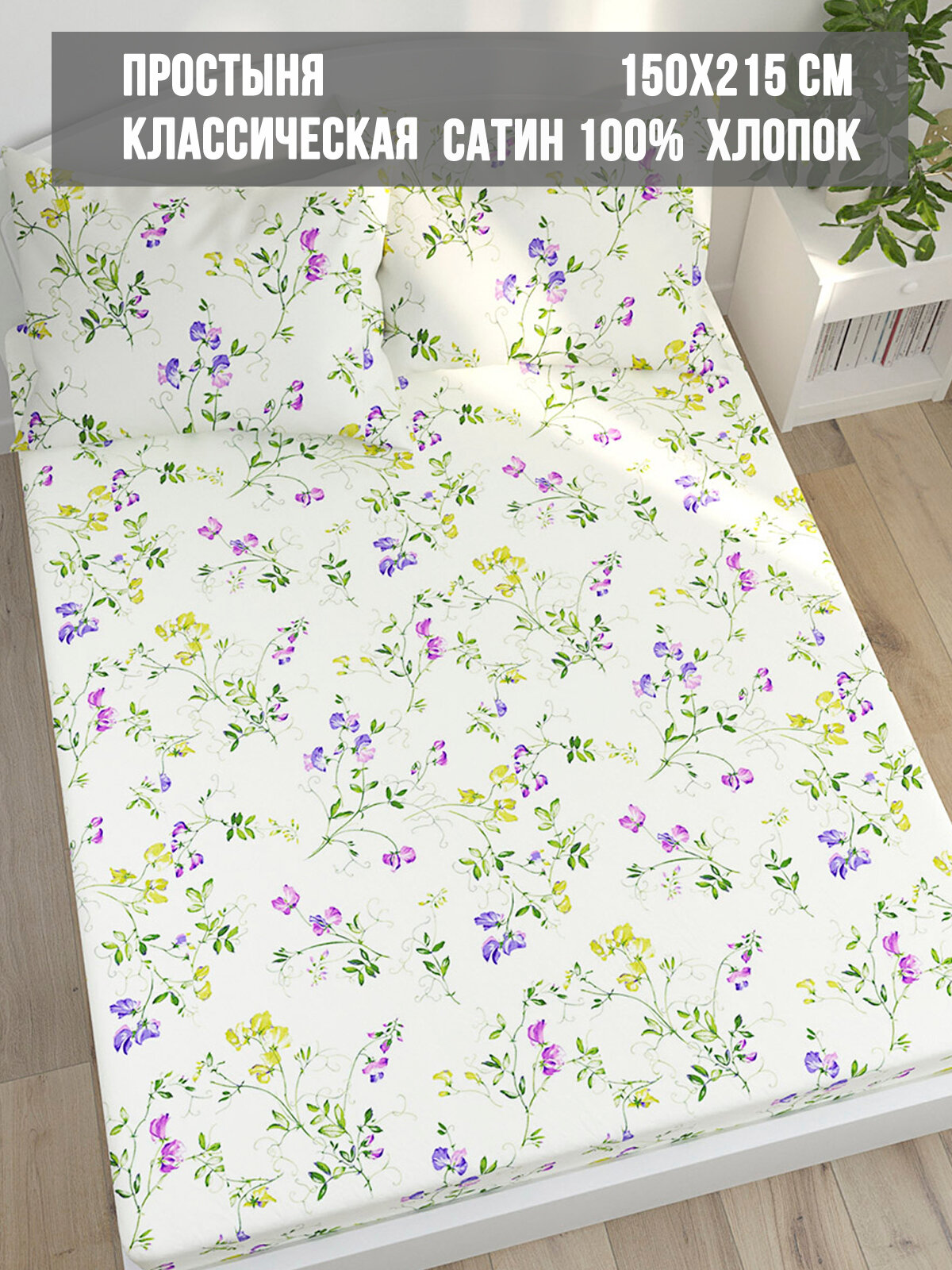Простынь сатин Milky Garden "Мэри" 150х215 см, 1.5-спальная, классическая, сатин, хлопок 100%