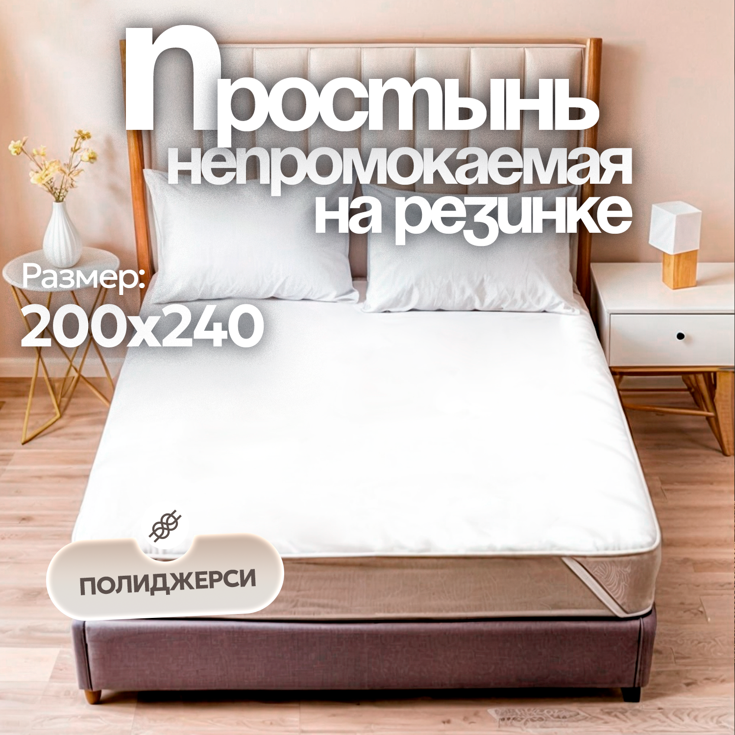 Простыня непромокаемая (водонепроницаемая) на резинке Поли-джерси Аквастоп 200х200