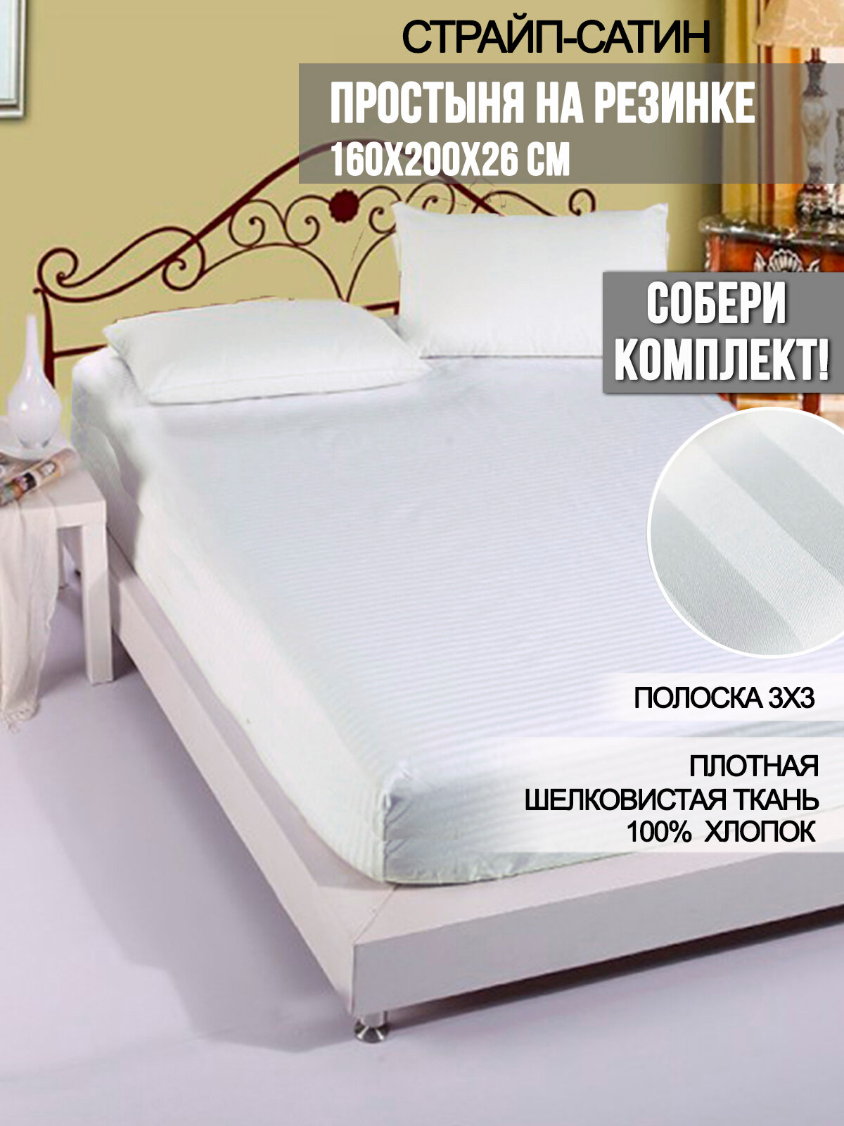 Простынь на резинке Milky Garden "Сатин-страйп" 160х200 см интересное: