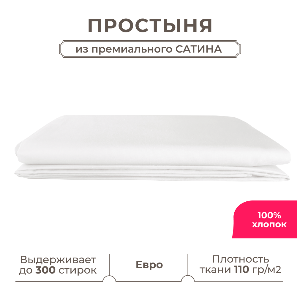 Купить Евро простынь Lisleep 230х250, классическая, сатин (100% хлопок), белый