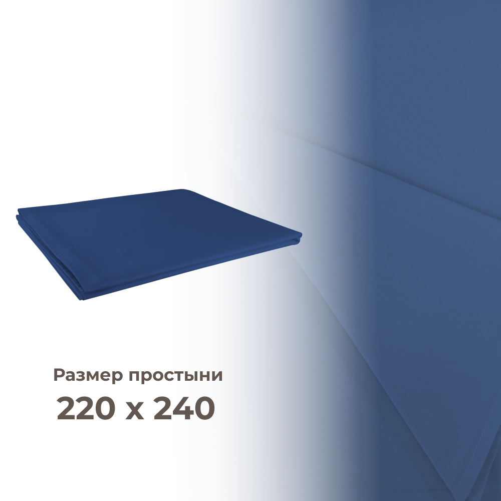 Купить Евро простынь Lisleep 220х240, классическая, сатин (100% хлопок), синий