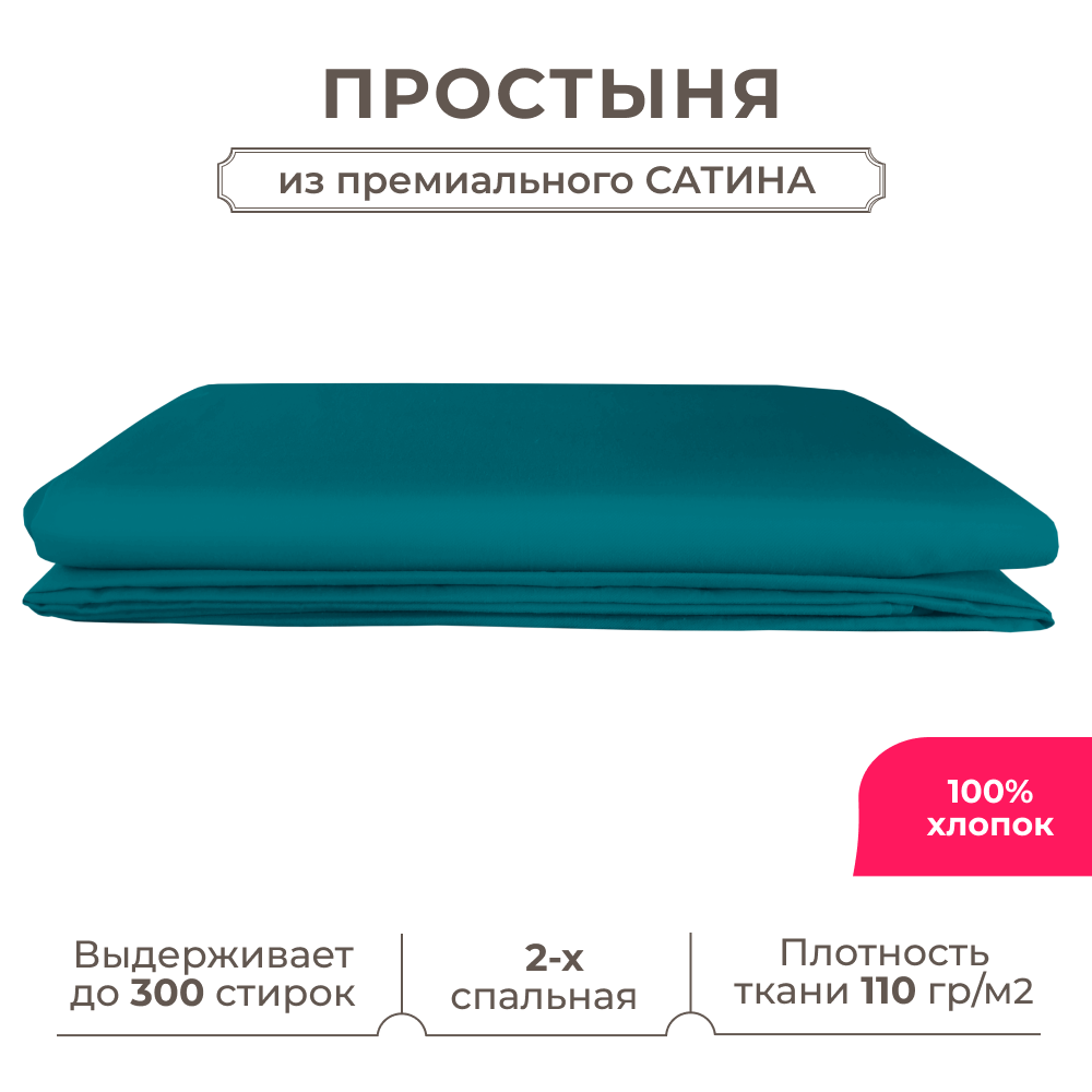 СохранитьДвуспальная простынь Lisleep 180х230, классическая, сатин (100% хлопок), изумрудный интересное: