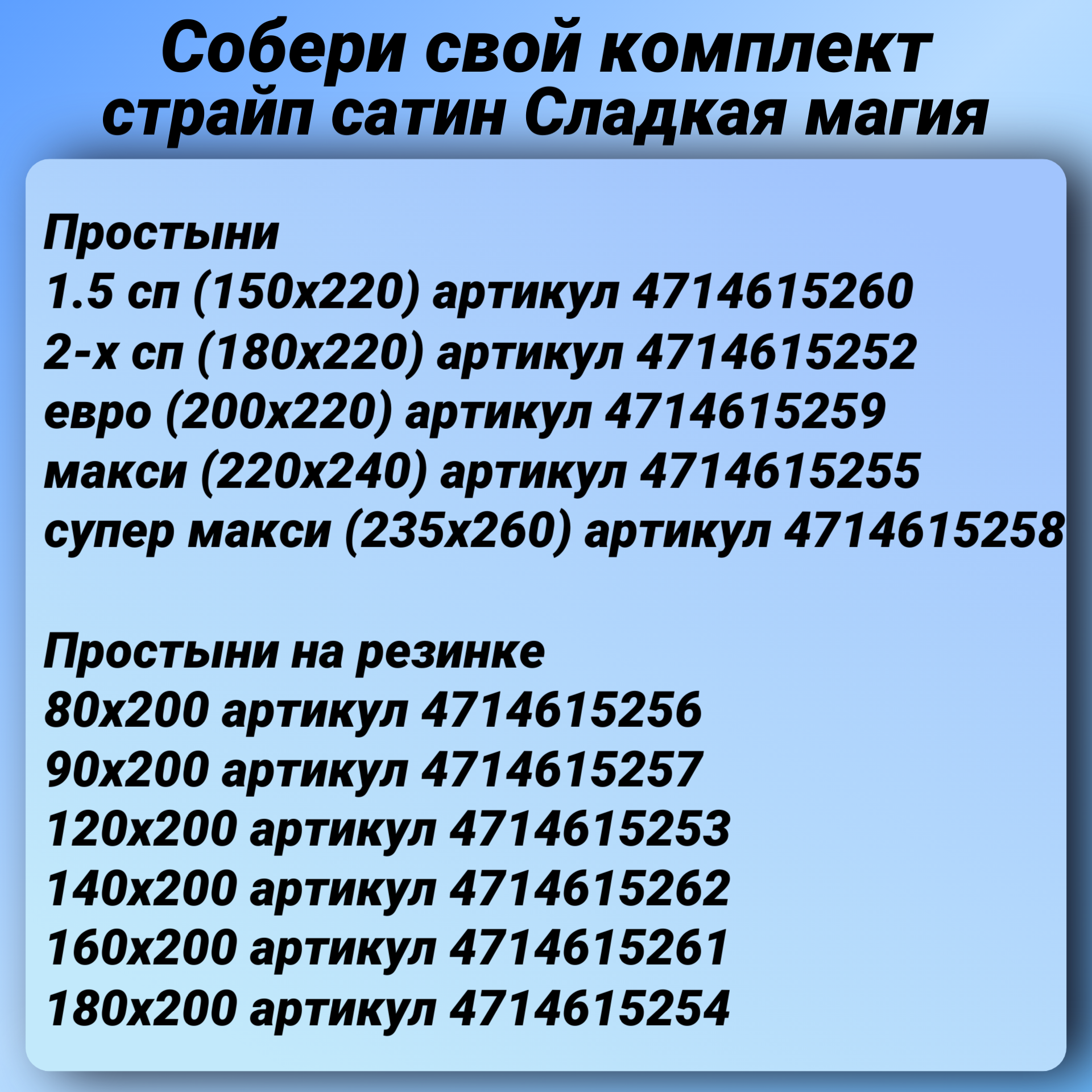 | Дополнительная информация | Обратите внимание, что расположение полосок на простыне поперек, а не вдоль! |