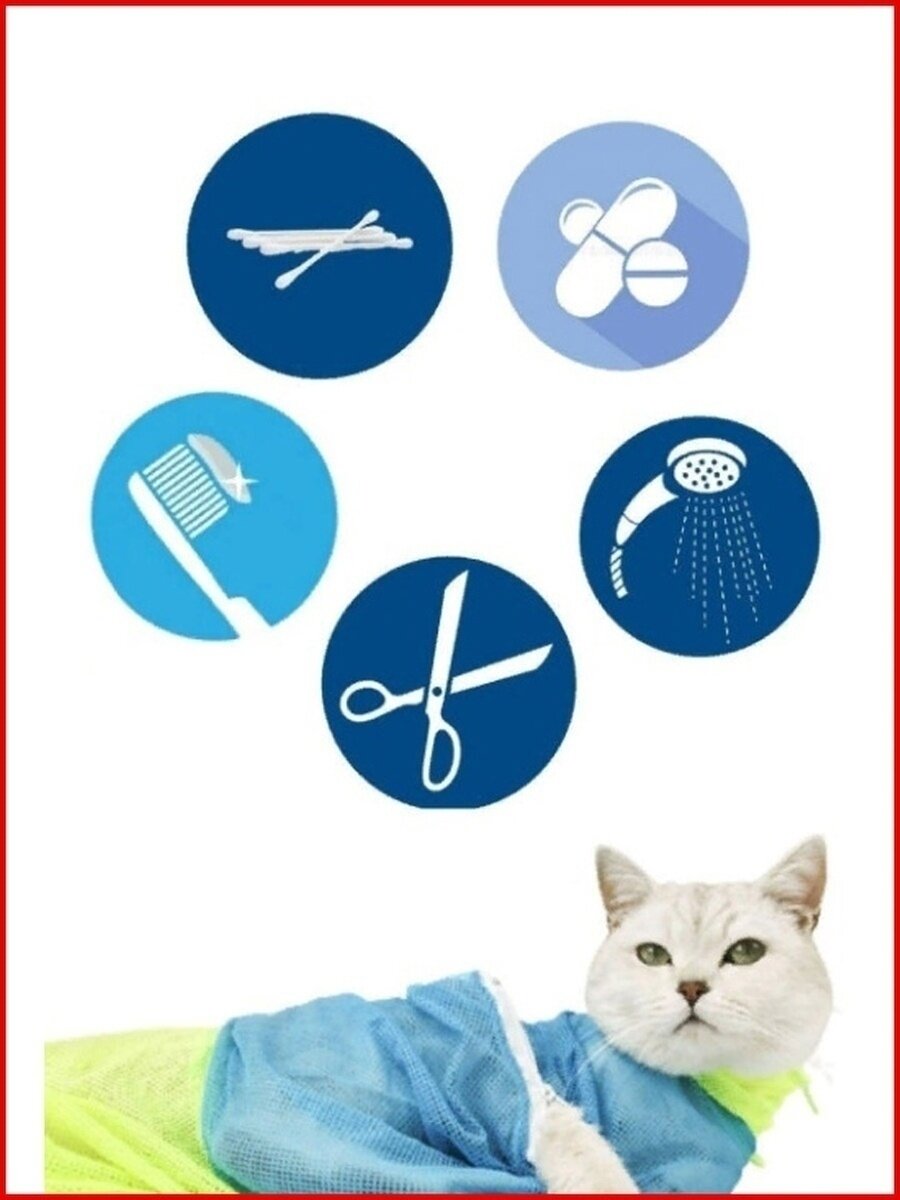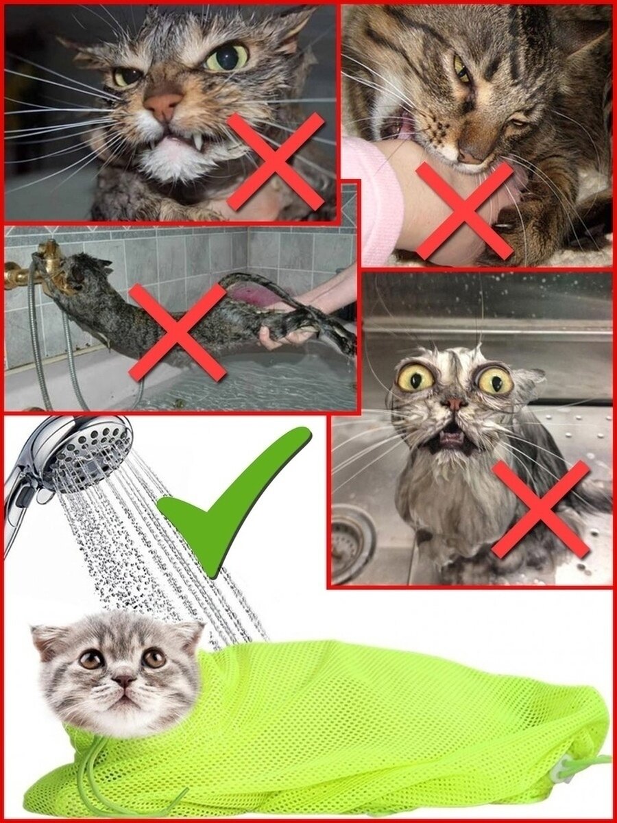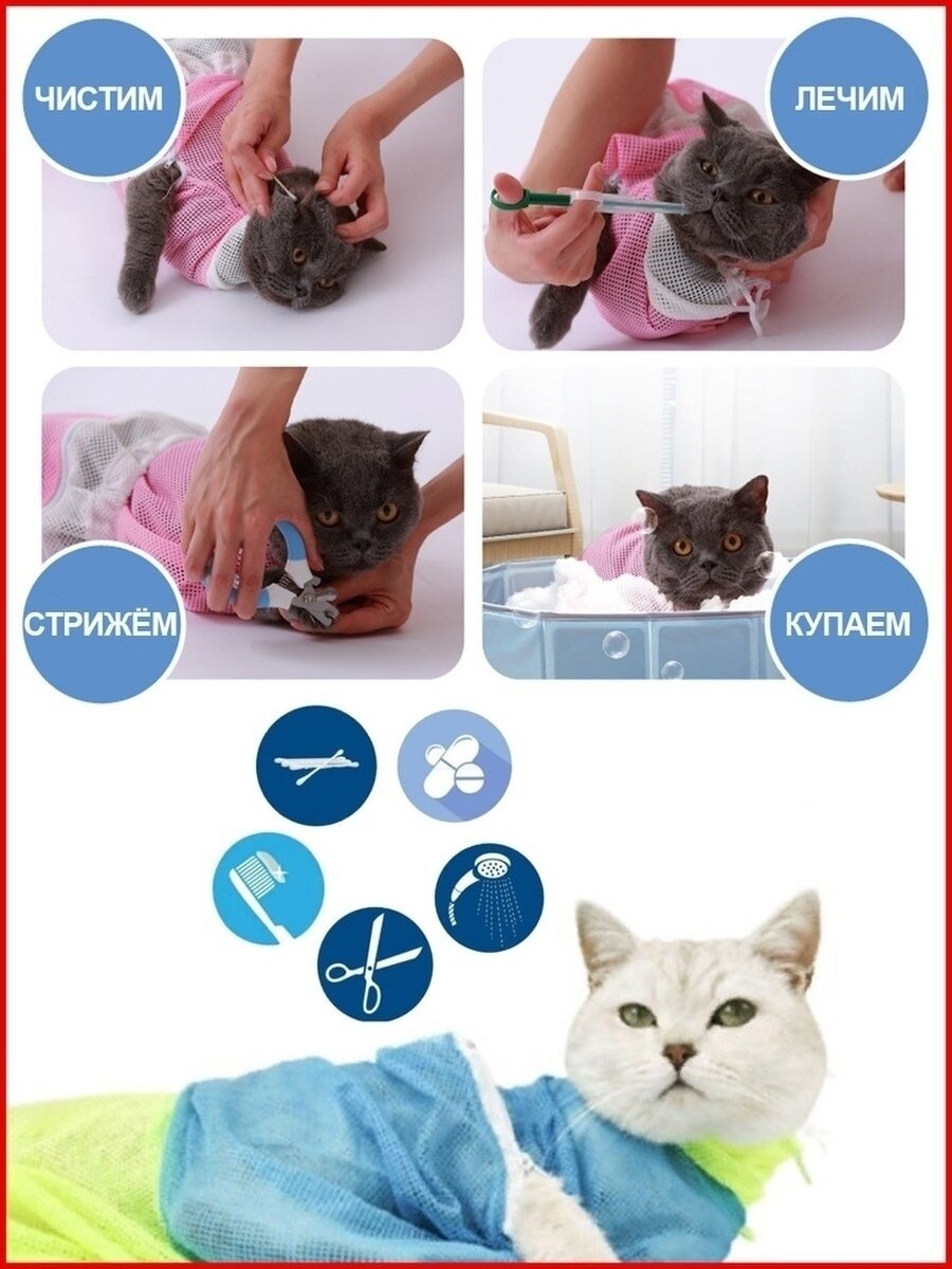 Сумка сетка для купания и груминга кошек / Мешок фиксатор для мытья котов / Сумка для ухода за животными (защита от царапин) интересное: