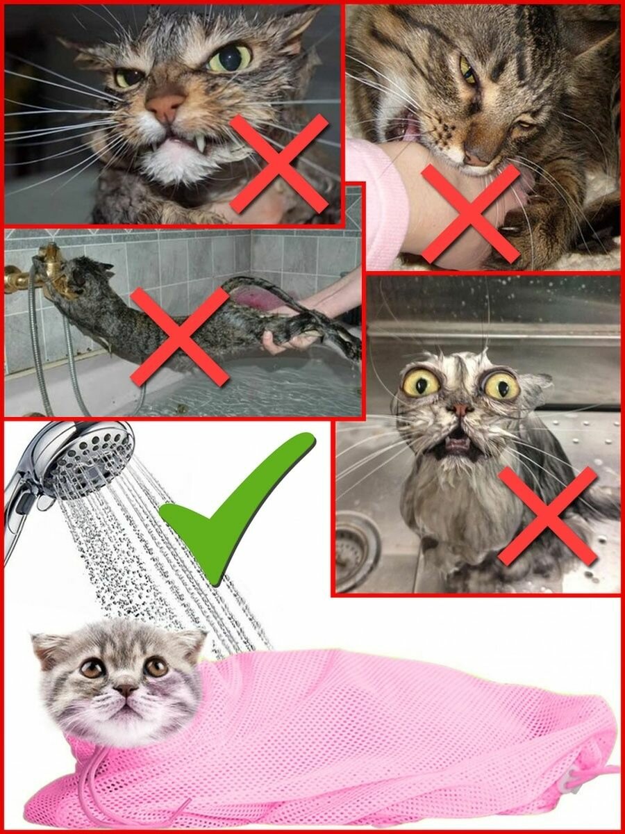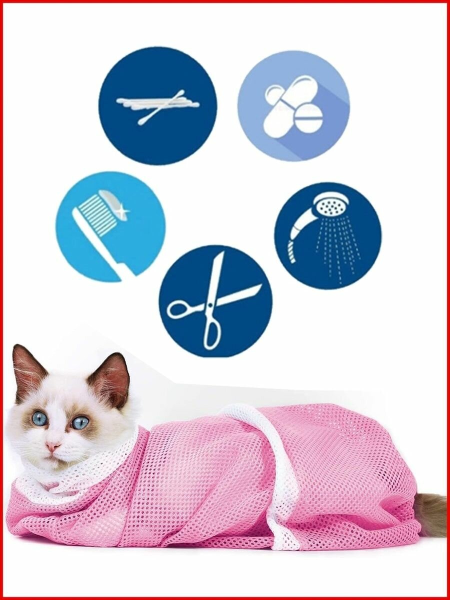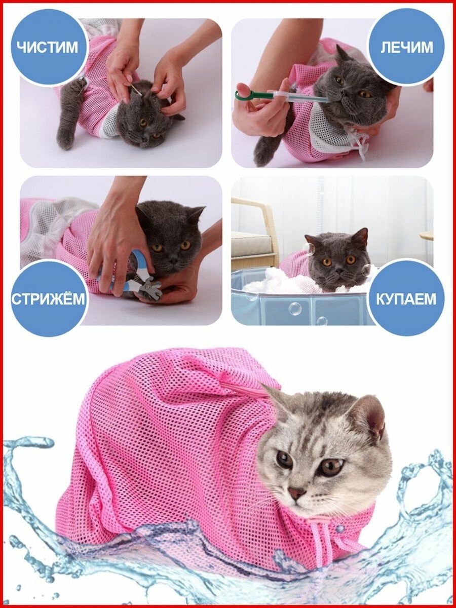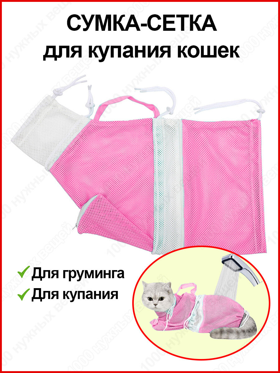 Сумка сетка для мытья и груминга кошек / Мешок для купания интересное: