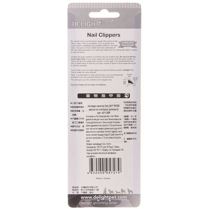 Когтерез-секатор для кошек и собак малых и средних пород DeLIGHT ROSE средний (M), со стопором, в блистере, розовый, серый, 40112MR