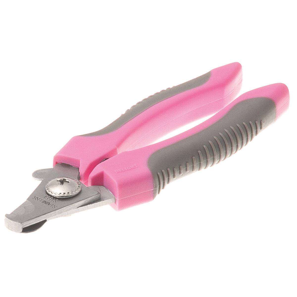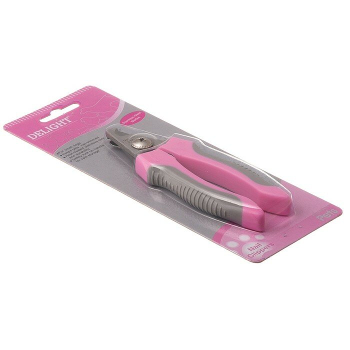 Купить Когтерез-секатор для кошек и собак малых и средних пород DeLIGHT ROSE средний (M), со стопором, в блистере, розовый, серый, 40112SR