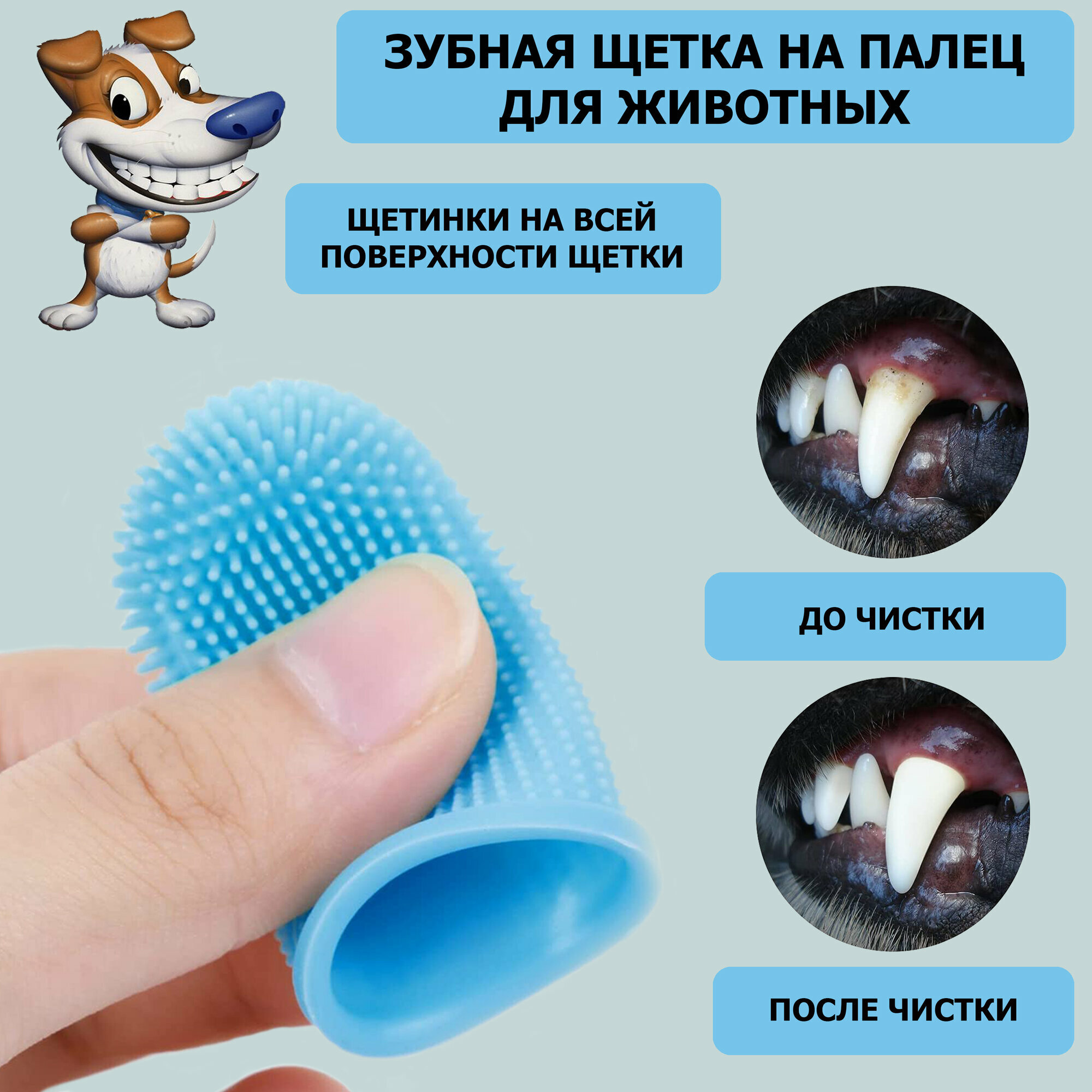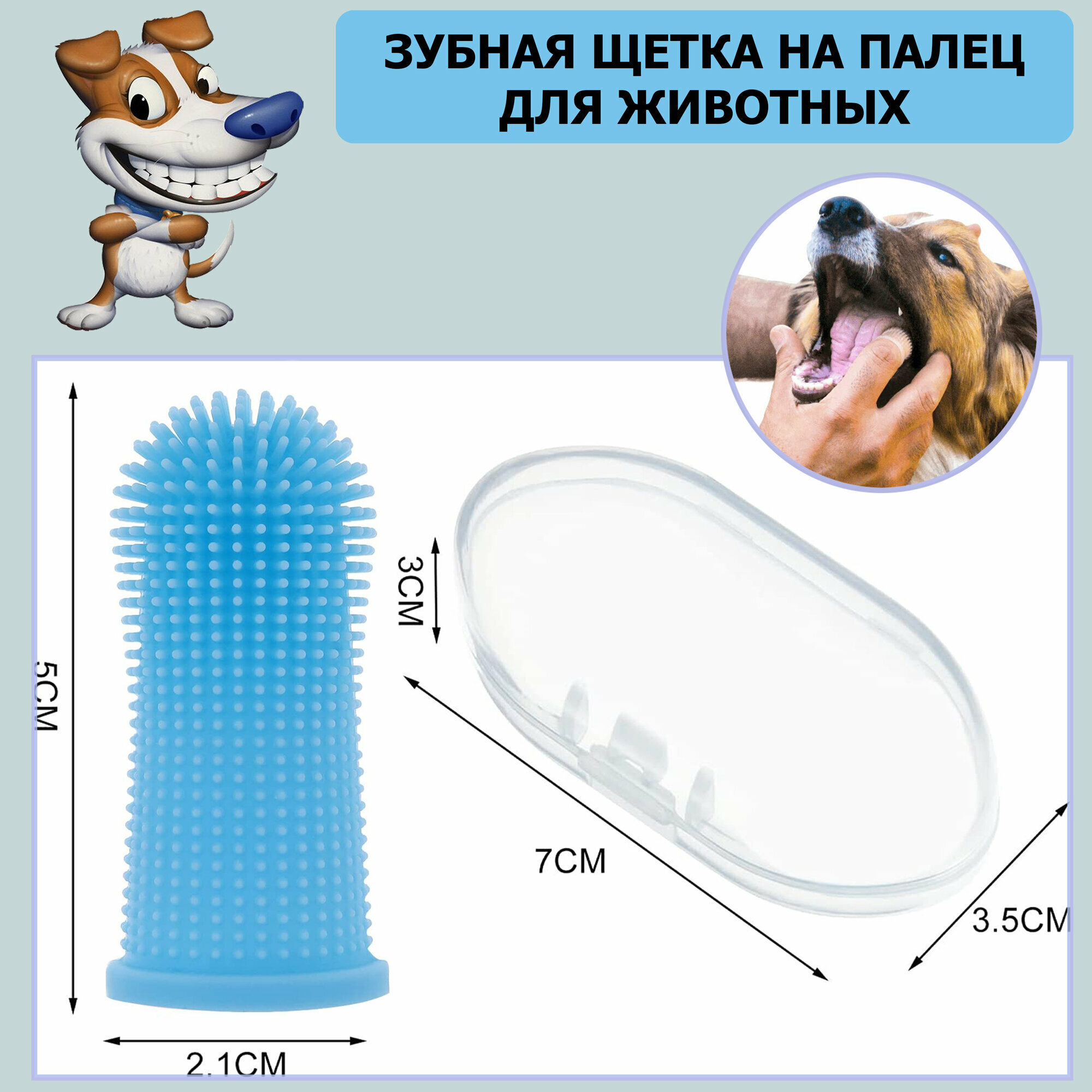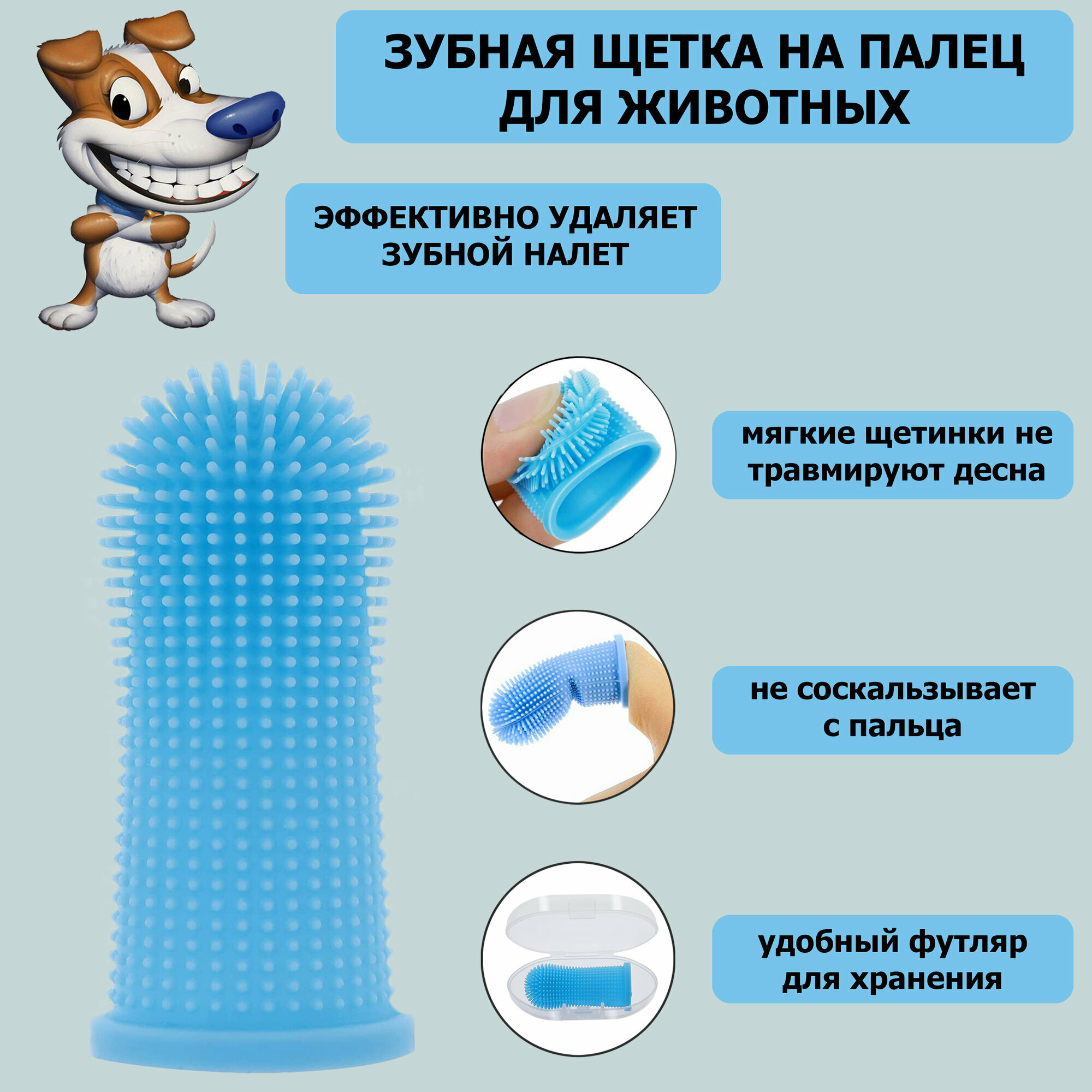 Зубная щетка для животных на палец в футляре. Силиконовая щетка для чистки зубов, для собак и кошек, голубая интересное: