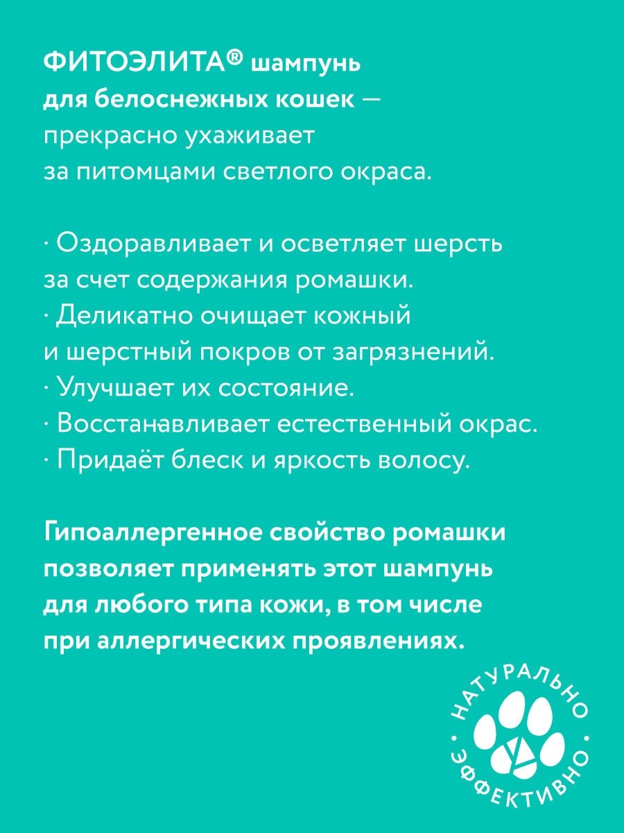 ФИТОЭЛИТА® шампунь для белоснежных кошек, 220 мл, VEDA интересное: