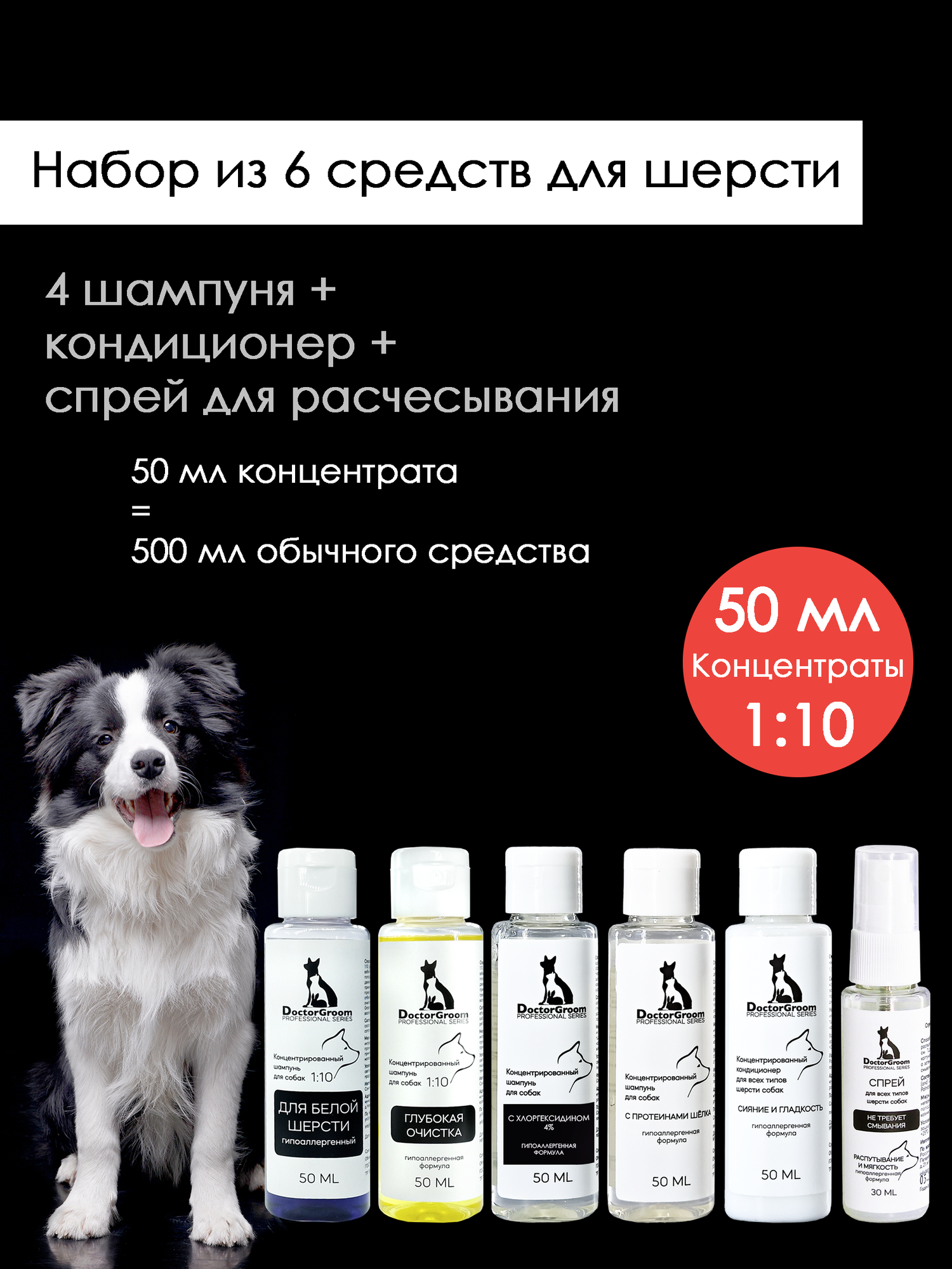 Купить Мини набор для ухода за шерстью собак Doctor Groom. Для всех типов шерсти и пород. 6 средств