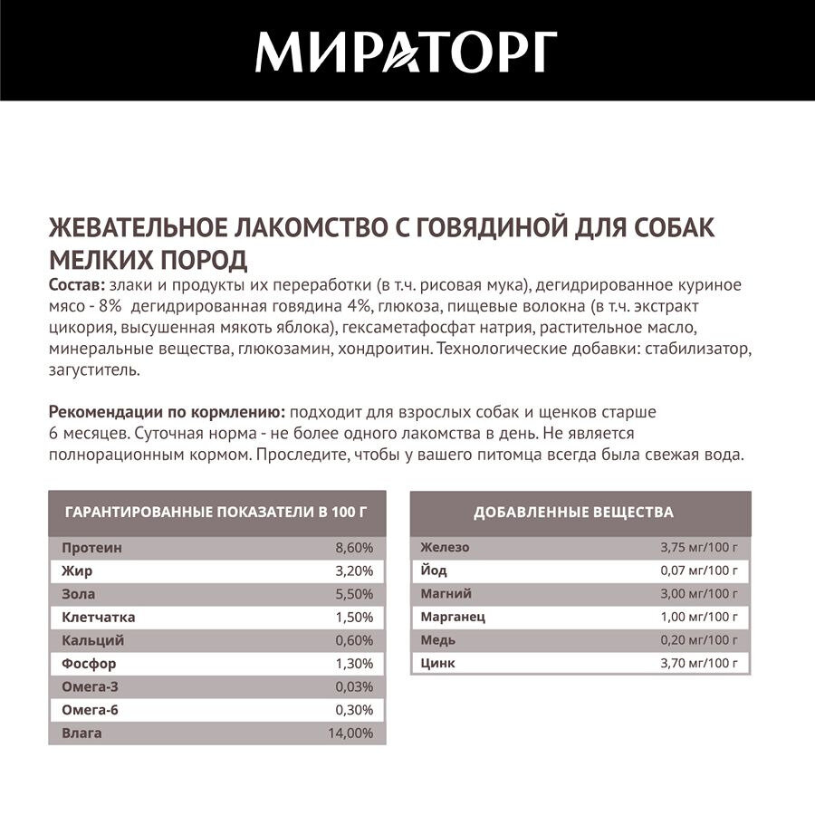 Мираторг Лакомство жевательное для собак мелких пород c говядиной 1010023750 0,040 кг 59572 (1 шт)