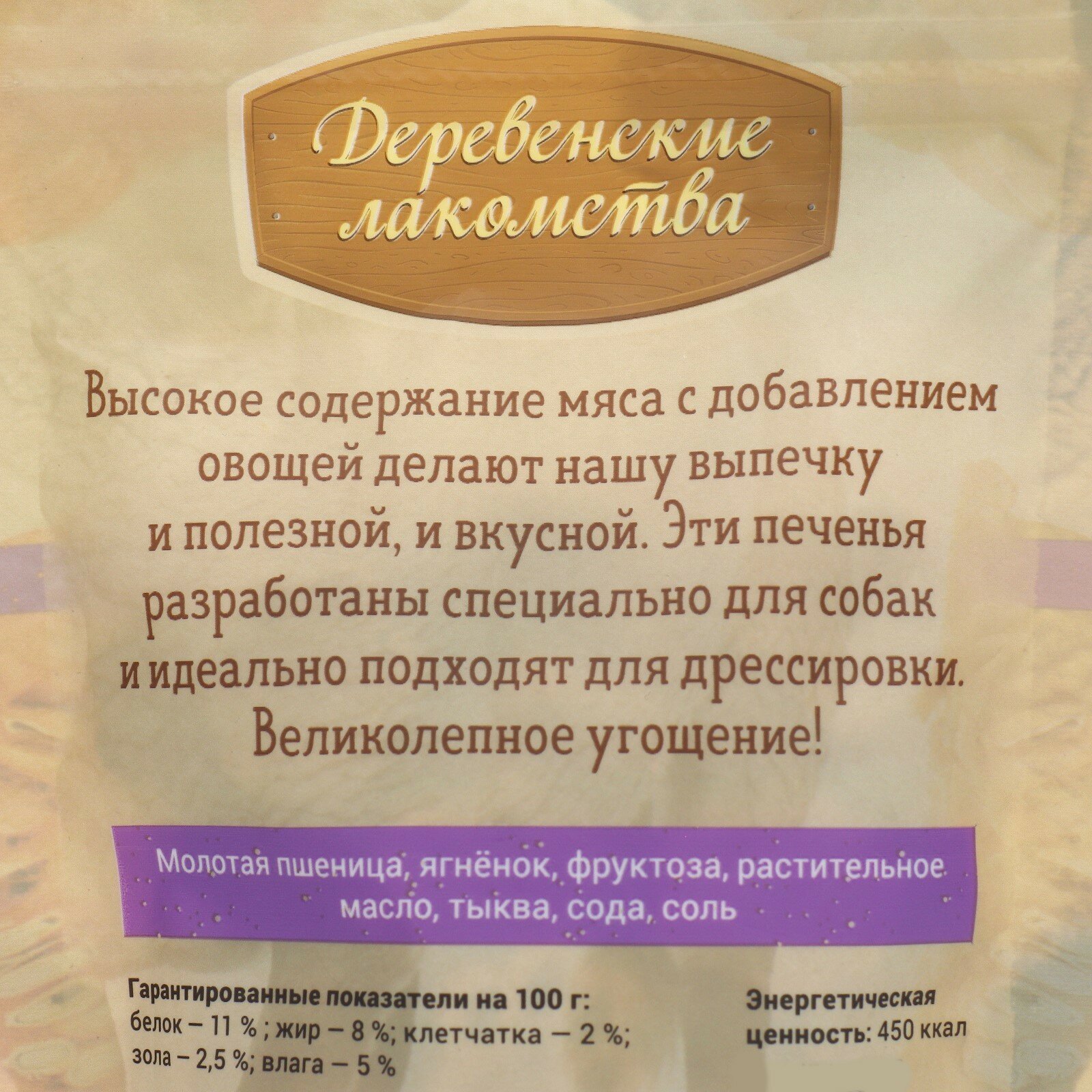Ниже Вы можете прочитать отзывы на Деревенские лакомства Печенье с ягненком и тыквой д/собак 100г, ознакомится с подробными характеристиками, посмотреть интересные обзоры и фотографии на Деревенские лакомства Печенье с ягненком и тыквой д/собак 100г.