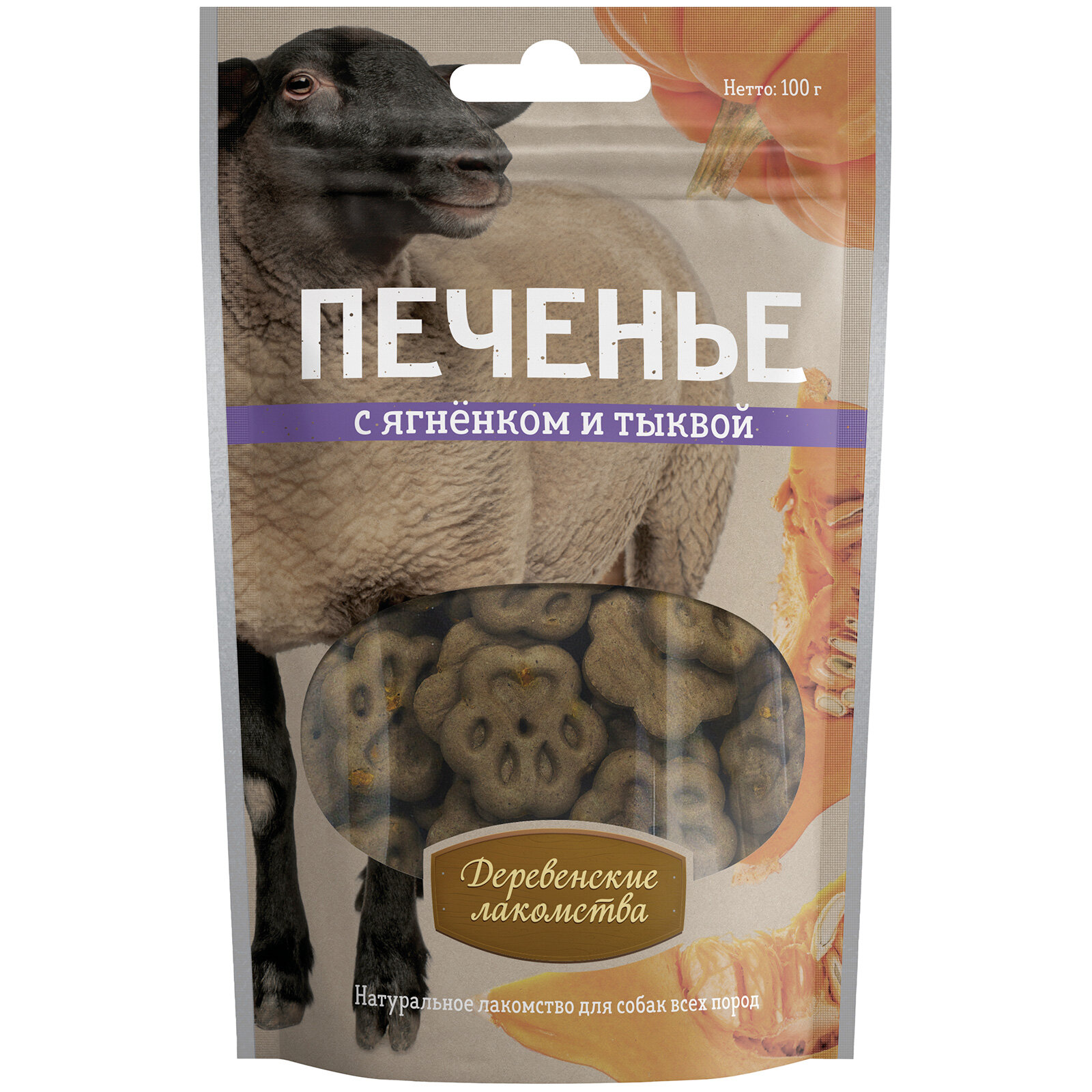 Купить Деревенские лакомства Печенье с ягненком и тыквой д/собак 100г
