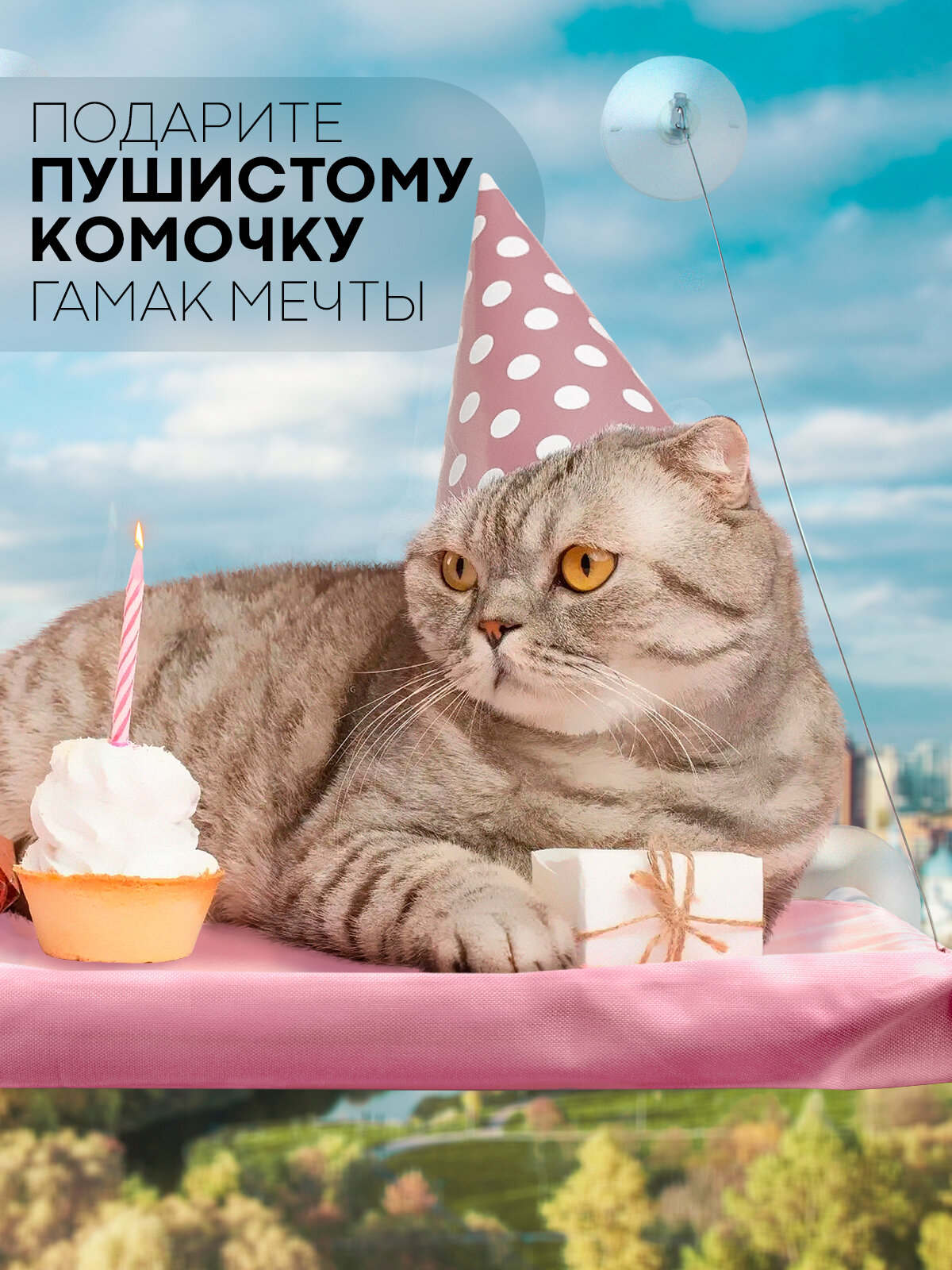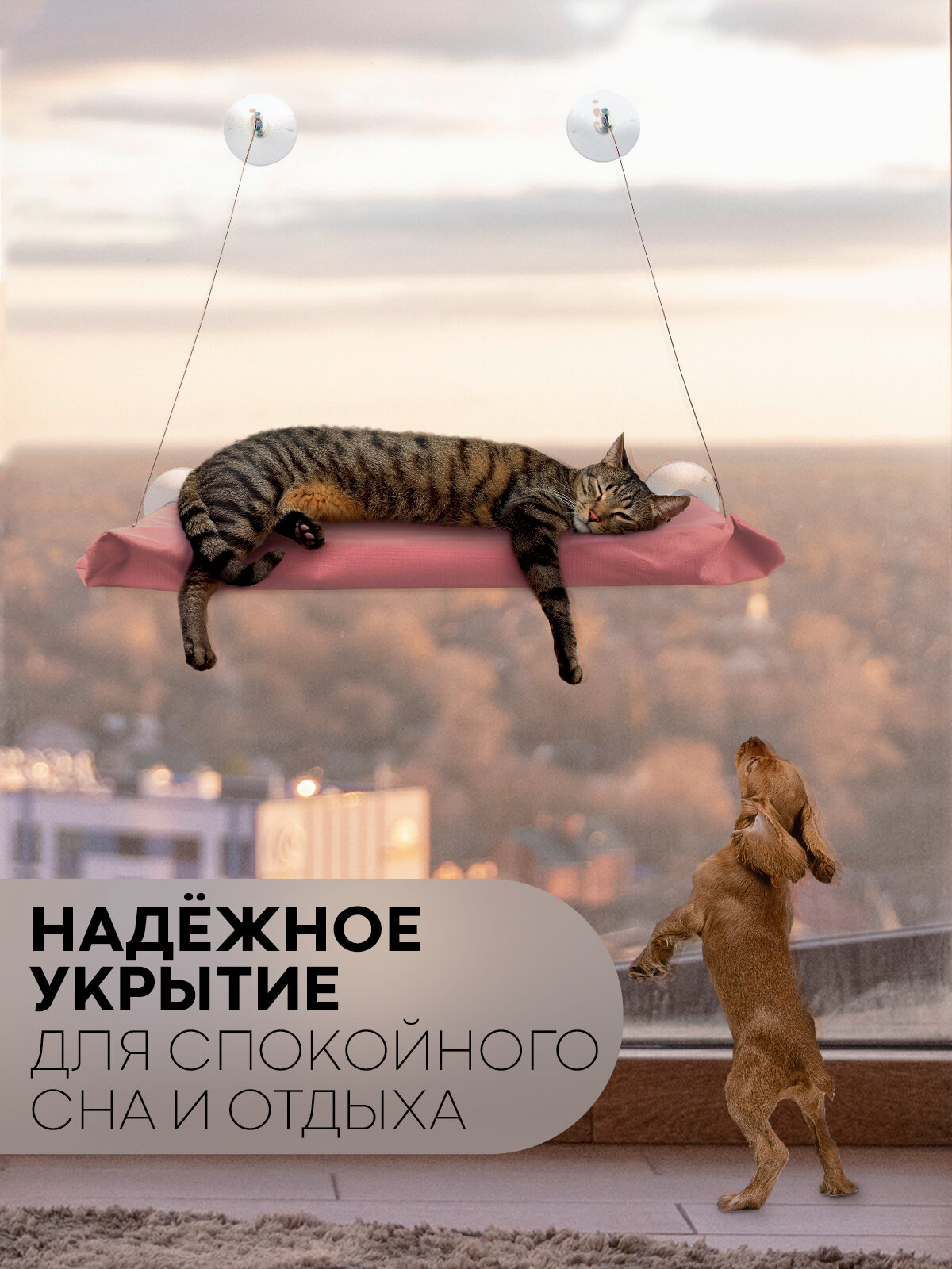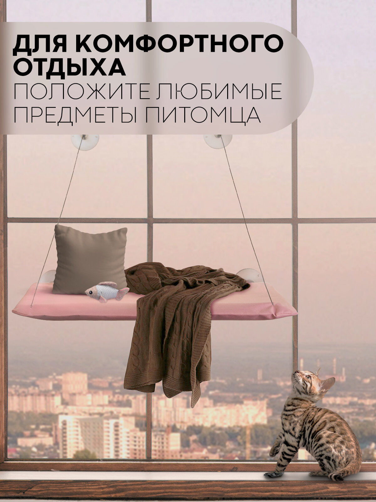 Навесной складной гамак полка для котов и кошек на окно, бренд Картофан, розовый