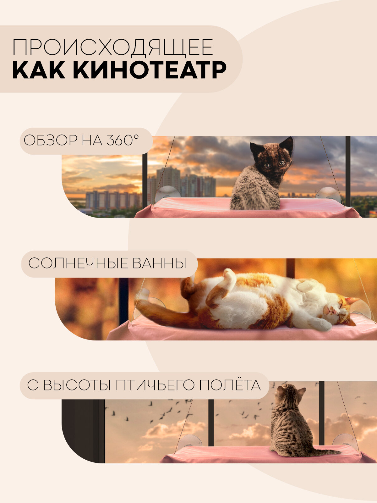 Навесной гамак полка для котов и кошек на окно, бренд Картофан, бежевый