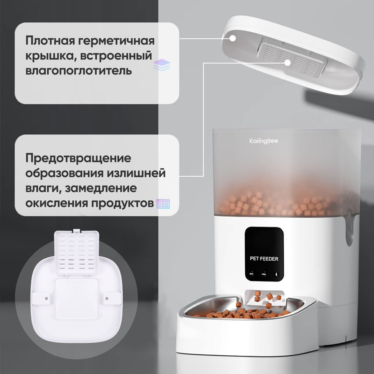 Умная кормушка с таймером KaringBee 3л , Кормушка идет в комплекте с поилкой, для всех домашних животных KB-V-3