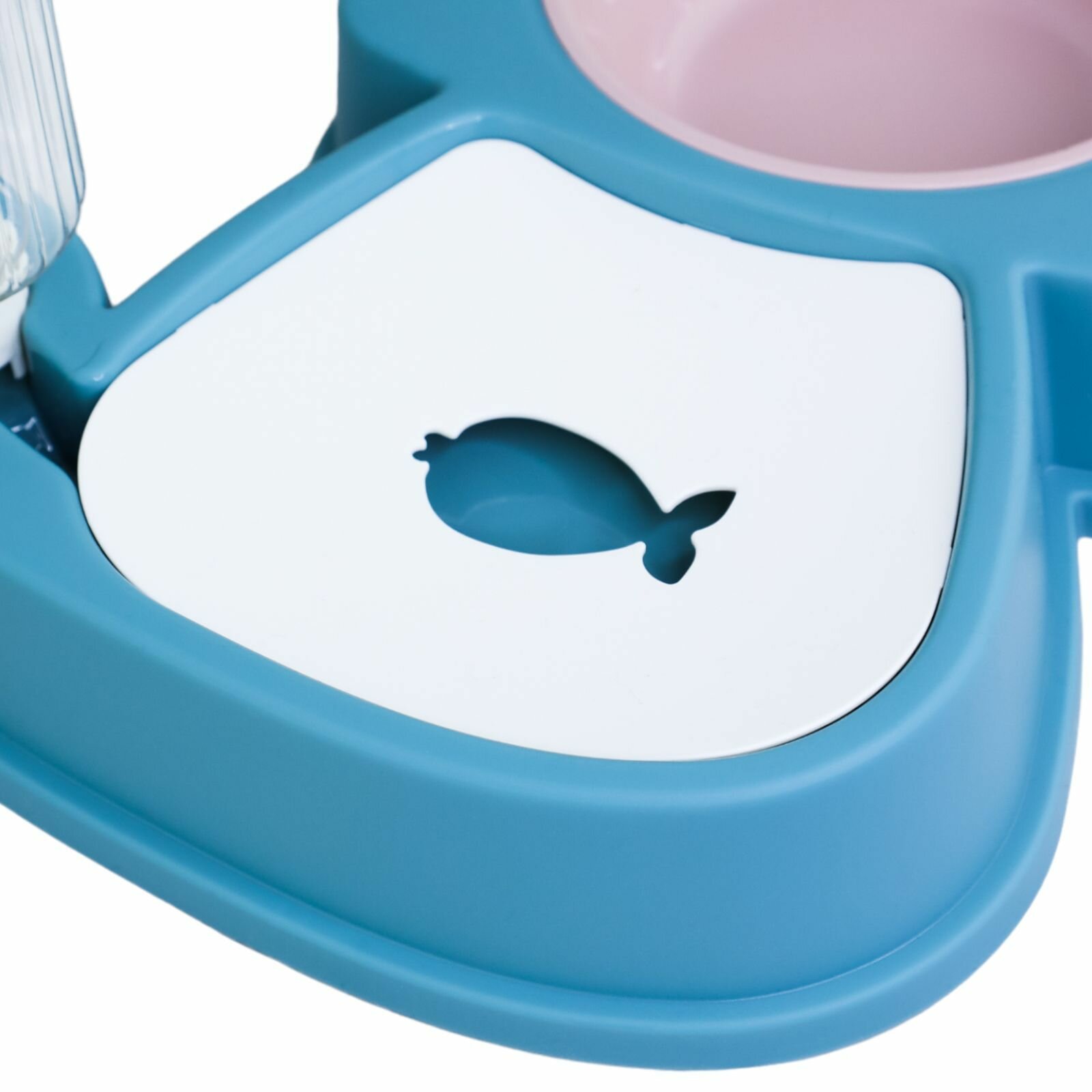 Двойная миска с автопоилкой для кошек, для собак, для животных, "Не Один Дома" Fish, синий, 35х20х27 см