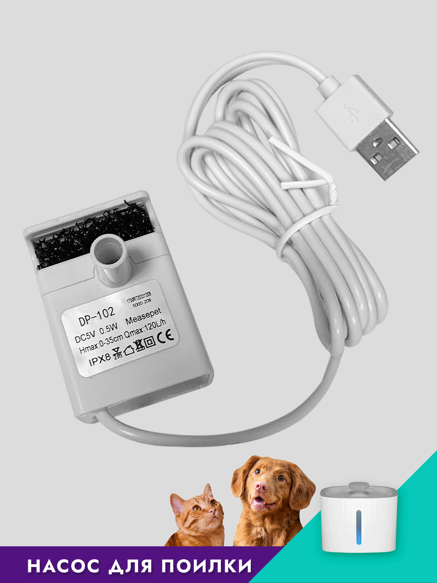 Насос для поилок Pets&Mom, без подсветки, пластик, бесшумный, USB