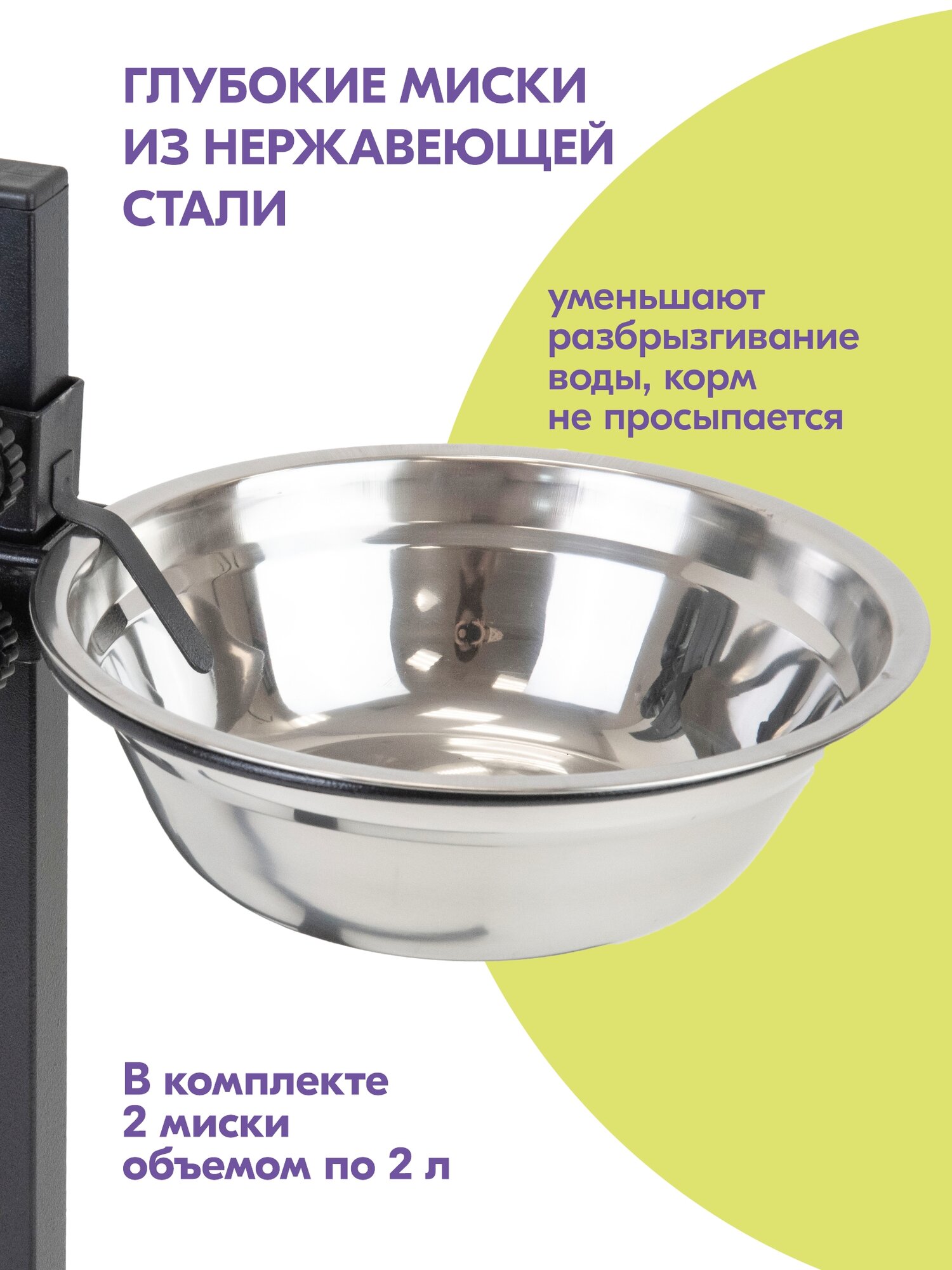Купить Миска на подставке, стойка металлическая, регулируемая, двойная "PetTails", черная, h50см, 2*2,0л, D24см