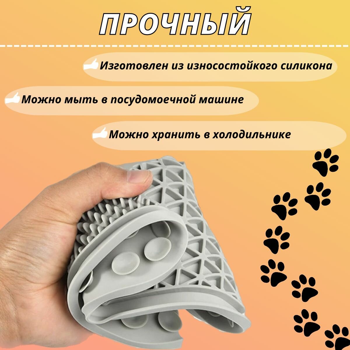 Лизательный коврик "Лапка", для медленного кормления собак и кошек, серый 20х20 см