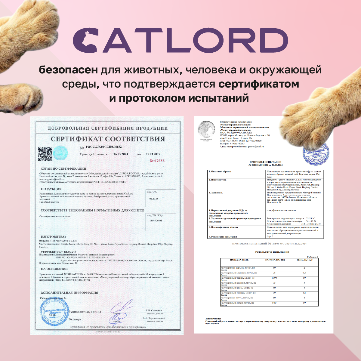 Наполнитель комкующийся тофу соевый Сat Lord персик для кошачьего туалета, 12 л (2 шт. по 6 л.)