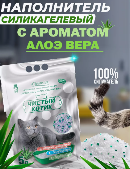 Чистый котик Наполнитель силикагелевый колотый с ароматом Алоэ Вера, 5 л интересное: