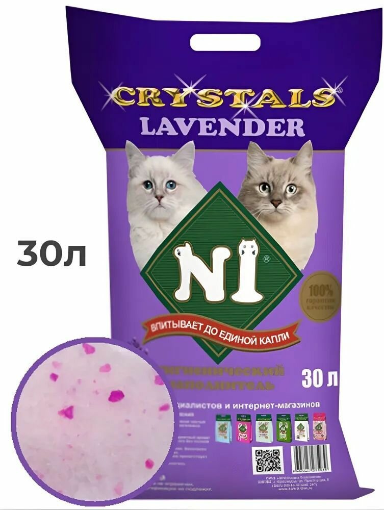 Наполнитель для кошачьего туалета N1 Crystals с ароматом лаванды, силикагелевый, 30 литров.