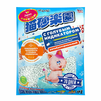 Наполнитель для кошачьего туалета комкующийся Japan Premium Pet целлюлозно-полимерный С голубым индикатором, 7 л. интересное:
