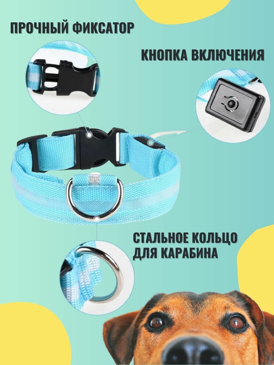 Светящийся ошейник для собак, для крупных, средних и мелких пород, светодиодный LED с регулировкой длинык интересное: