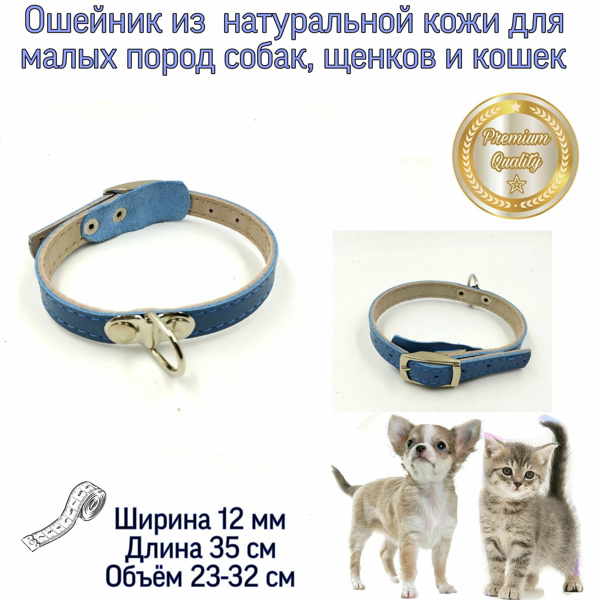 Ошейник из натуральной кожи для малых пород собак и кошек 12мм*35 см. Ременная пряжка. интересное: