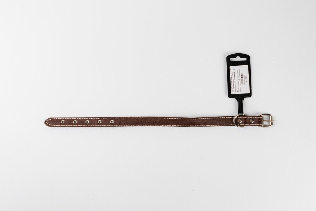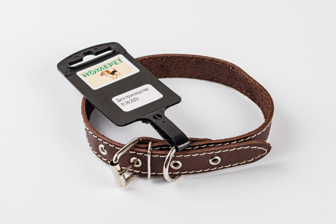 HOMEPET 20 мм 32-42 см ошейник для собак кожаный простой двойной простроченный двухслойный коричневы , 77819 (1 шт) интересное: