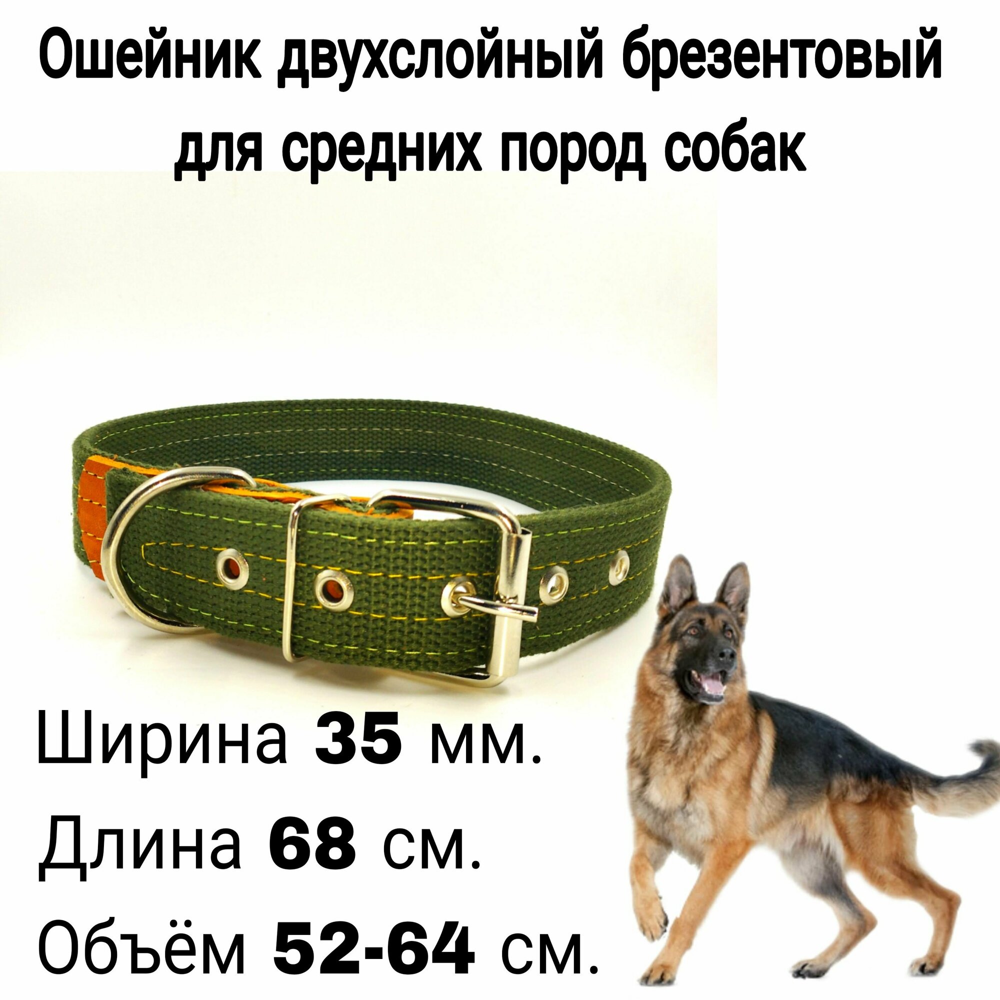 Ошейник брезентовый двухслойный для собак средних и крупных пород, щенков. Ширина 30 мм, длина 64 см, объём шеи 47-59 см.
