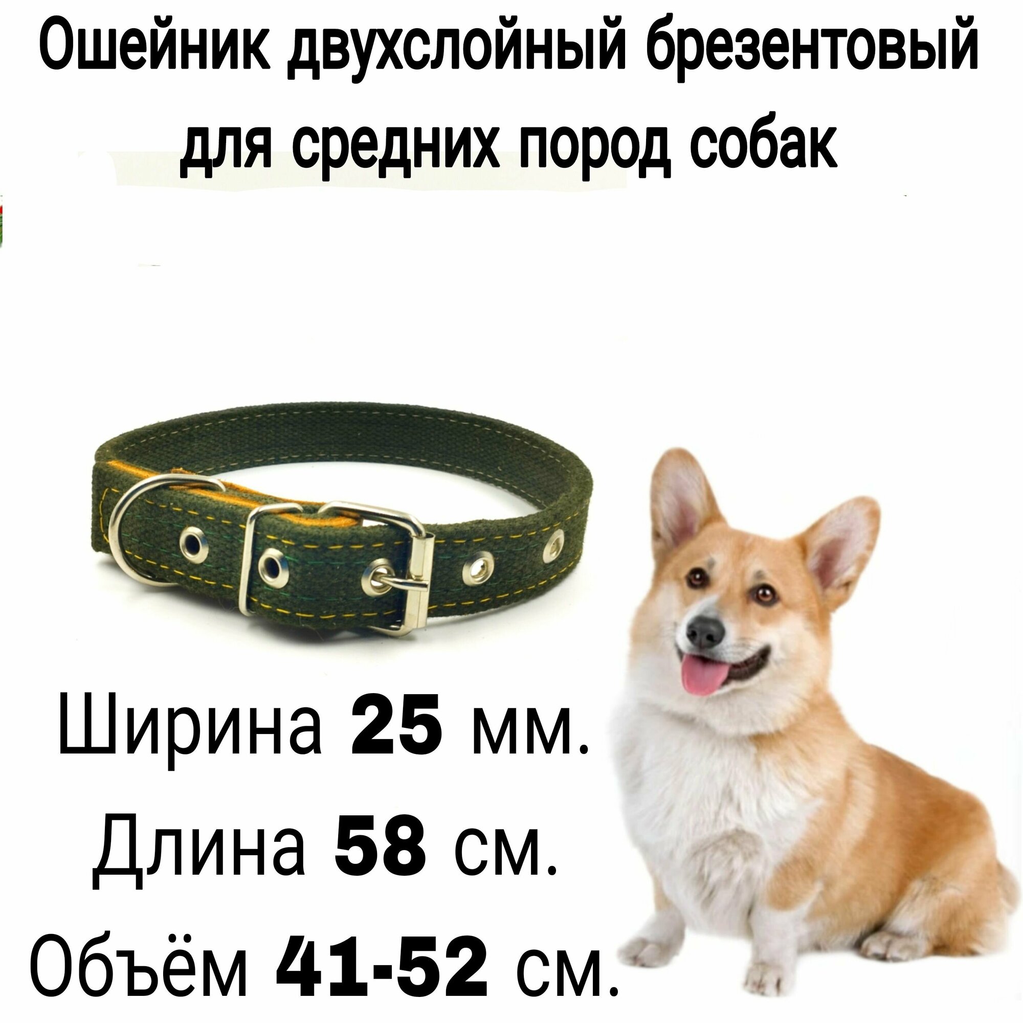 Ошейник брезентовый двухслойный для собак средних и крупных пород, щенков. Ширина 30 мм, длина 64 см, объём шеи 47-59 см.