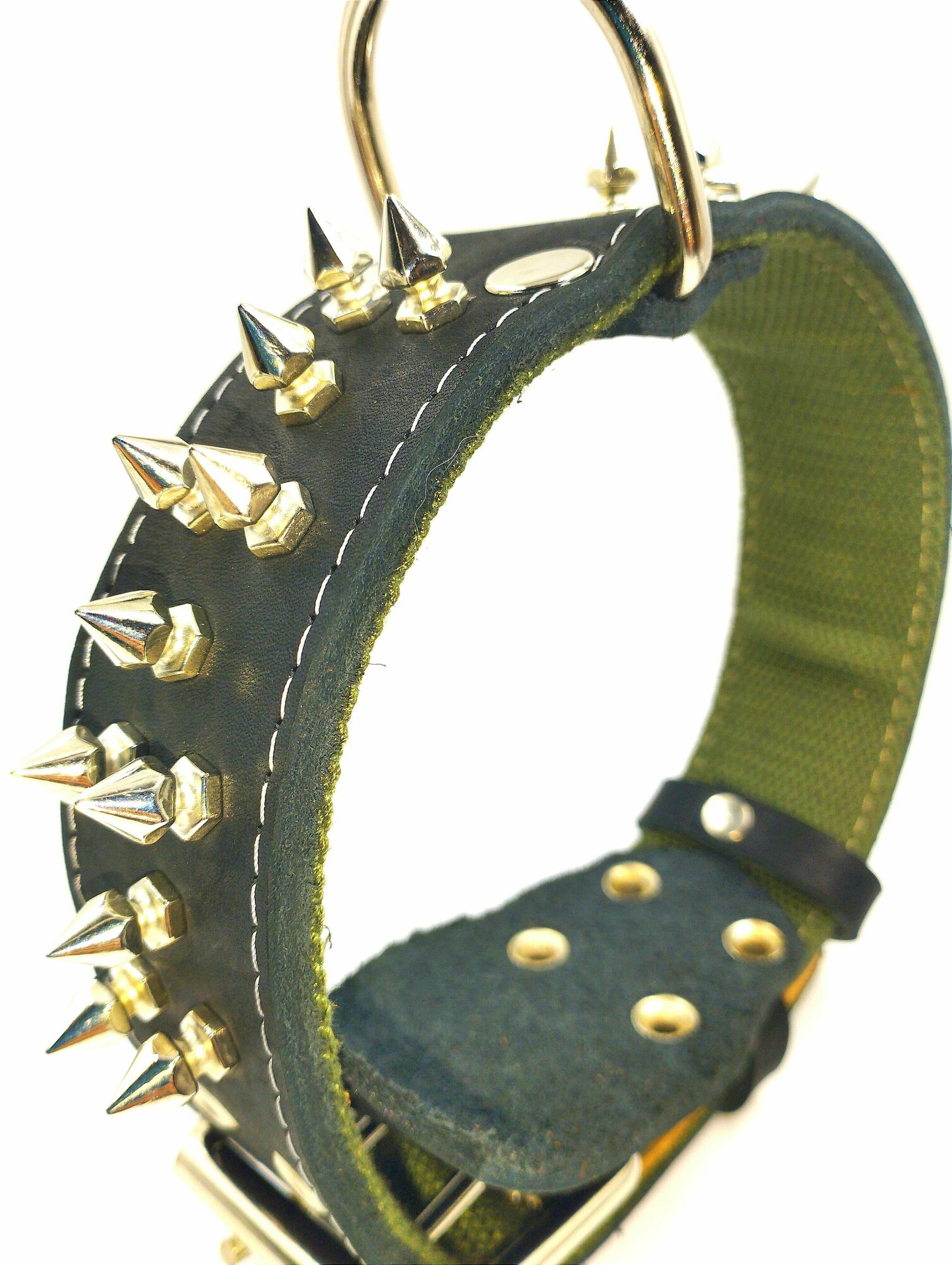 Ошейник из натуральной кожи и брезента с шипами, ширина 35 мм, длина 70 см, объём шеи 52-