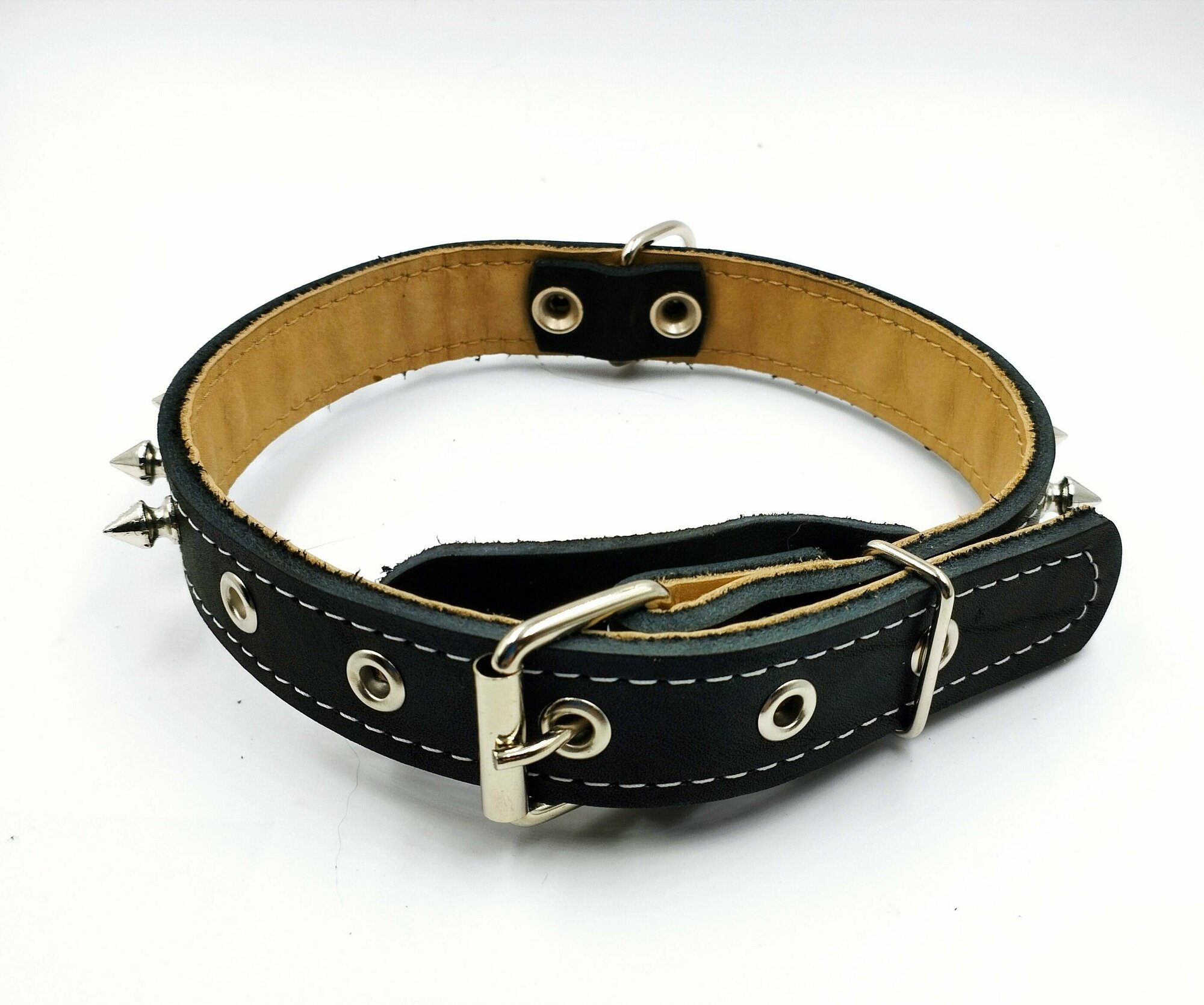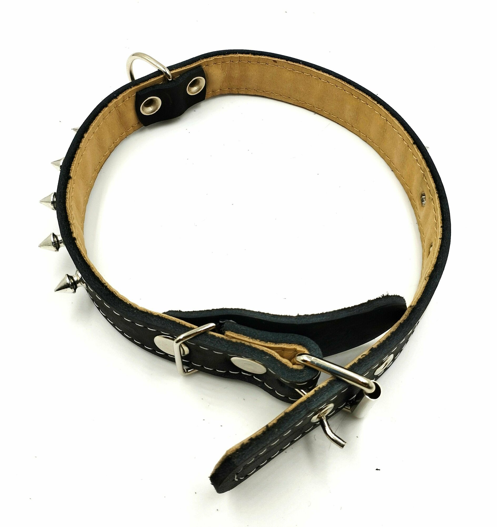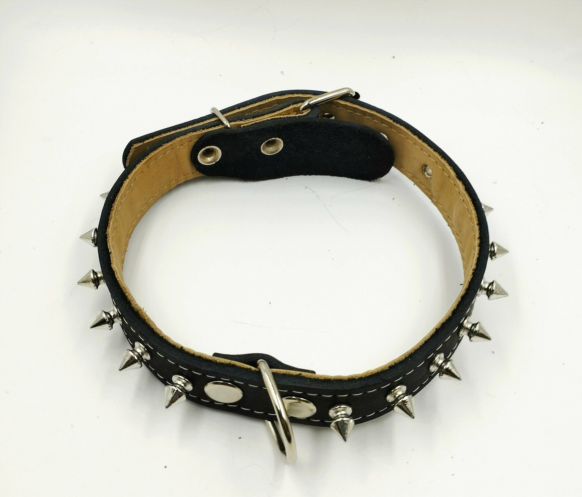 Купить Ошейник из натуральной кожи с шипами для собак средних пород и щенков 25 мм*60 см, объём шеи 41-53 см. Два слоя натуральной кожи.