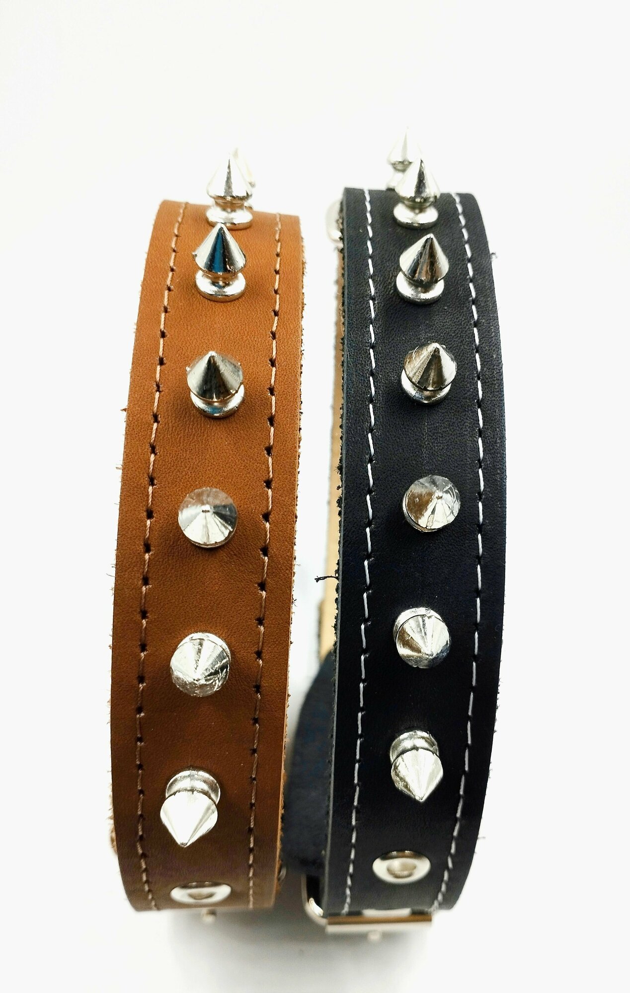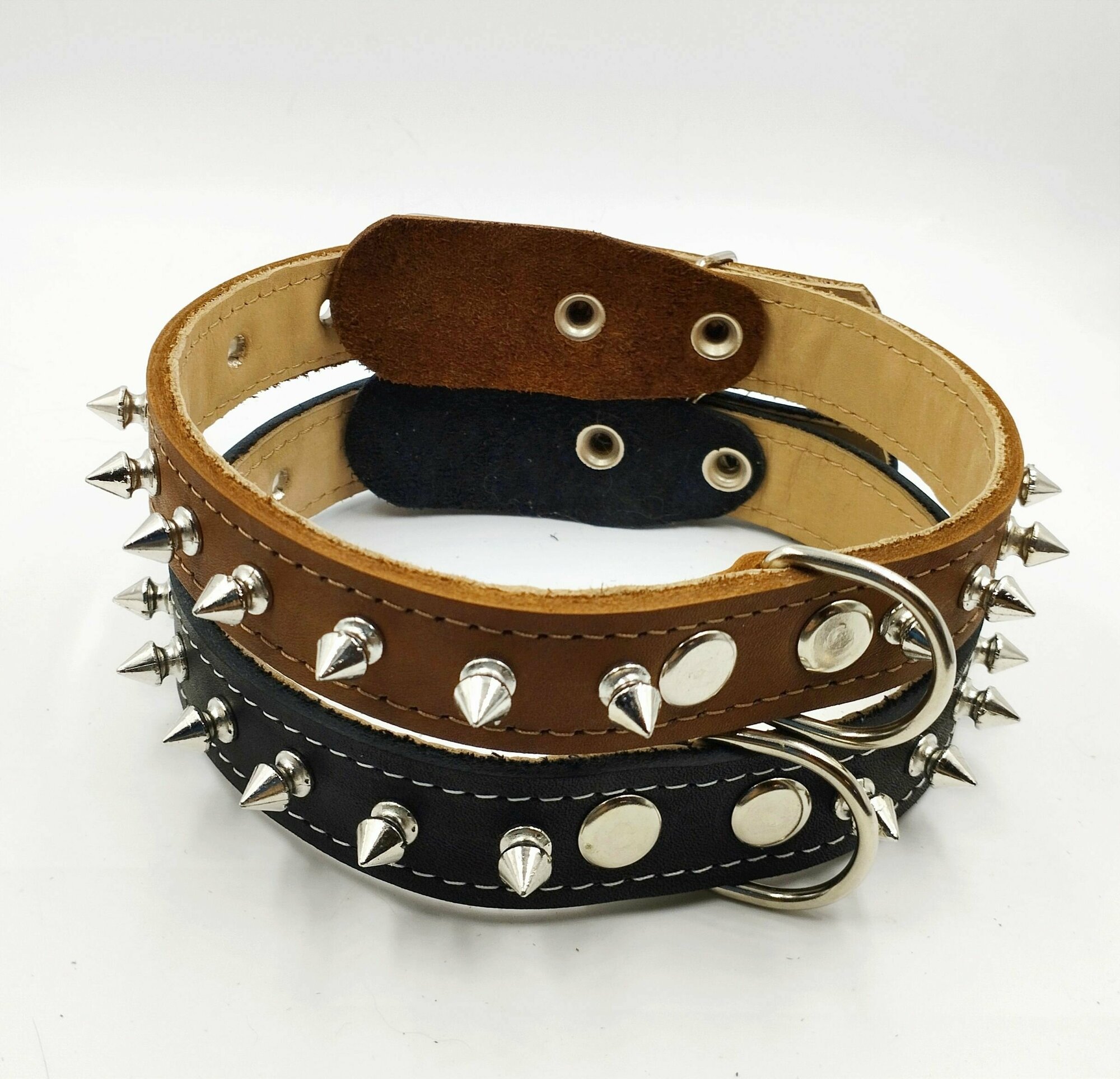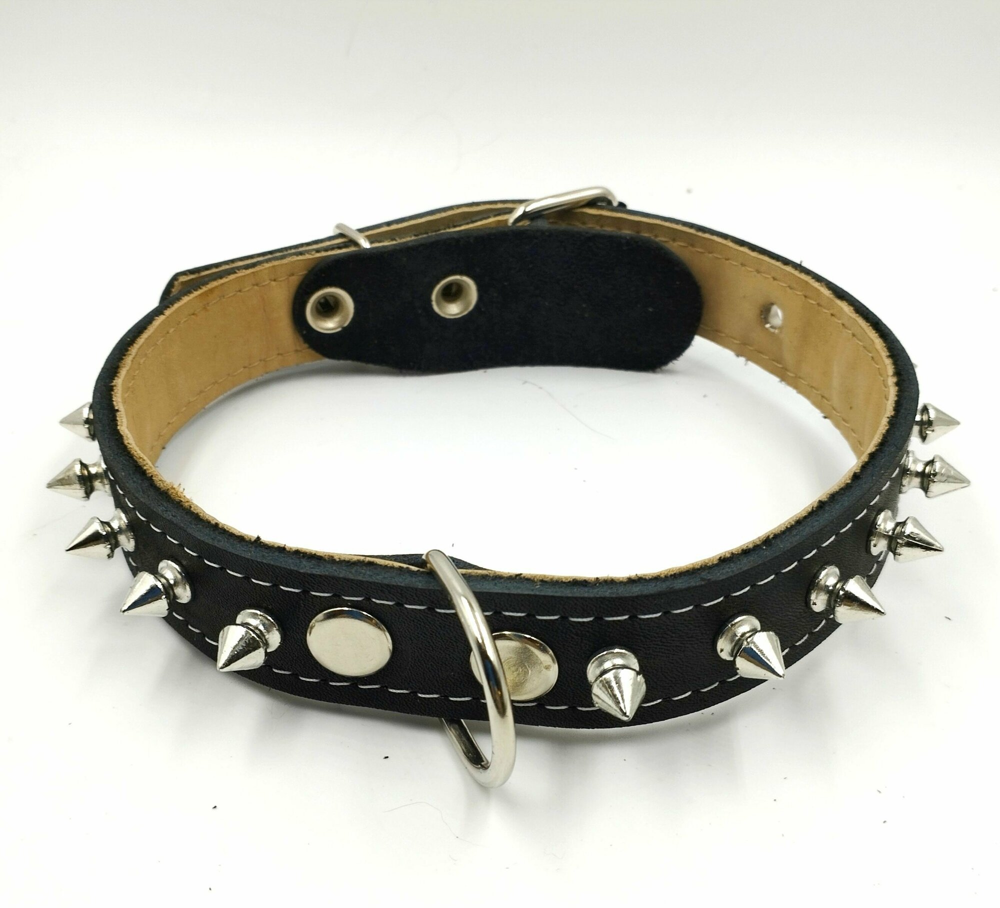 Купить Ошейник из натуральной кожи с шипами для собак средних пород и щенков 25 мм*60 см, объём шеи 41-53 см. Два слоя натуральной кожи.