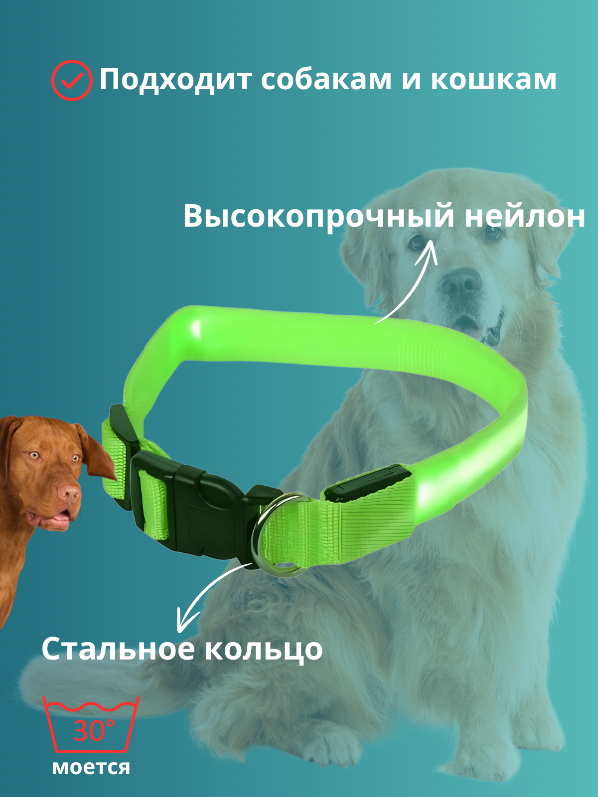Светящийся led-ошейник, ошейник для собак и кошек, универсальный (регулируемый размер), зеленый интересное: