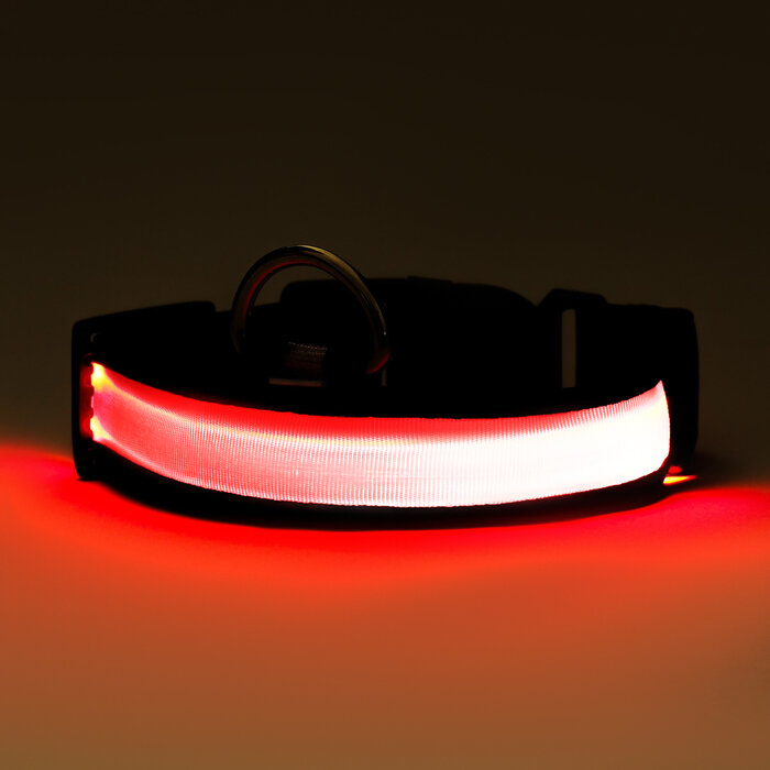 Купить Ошейник с подсветкой Flash 3 режима свечения, размер XL, ОШ 52-60 х 2,5 см, красный