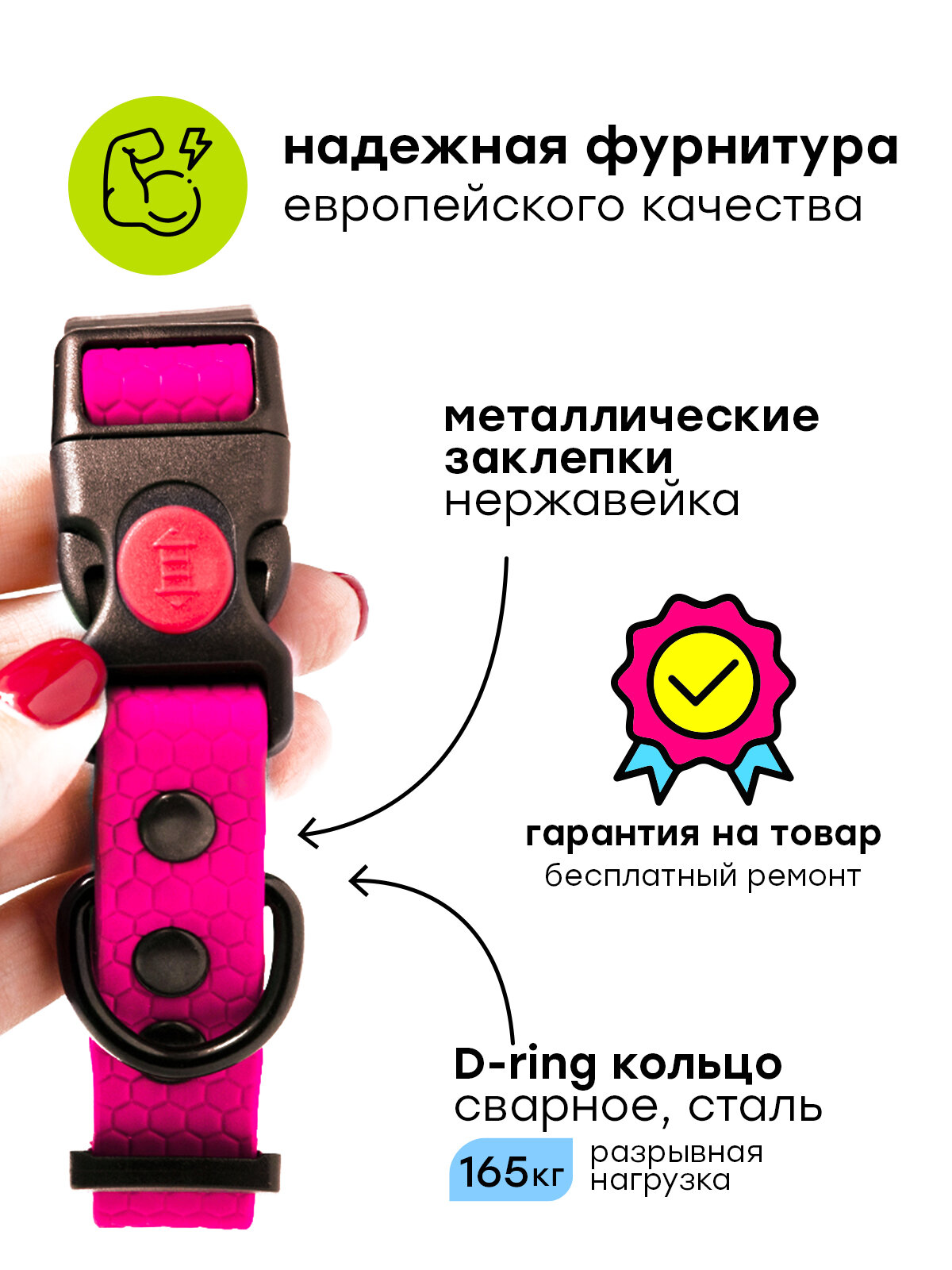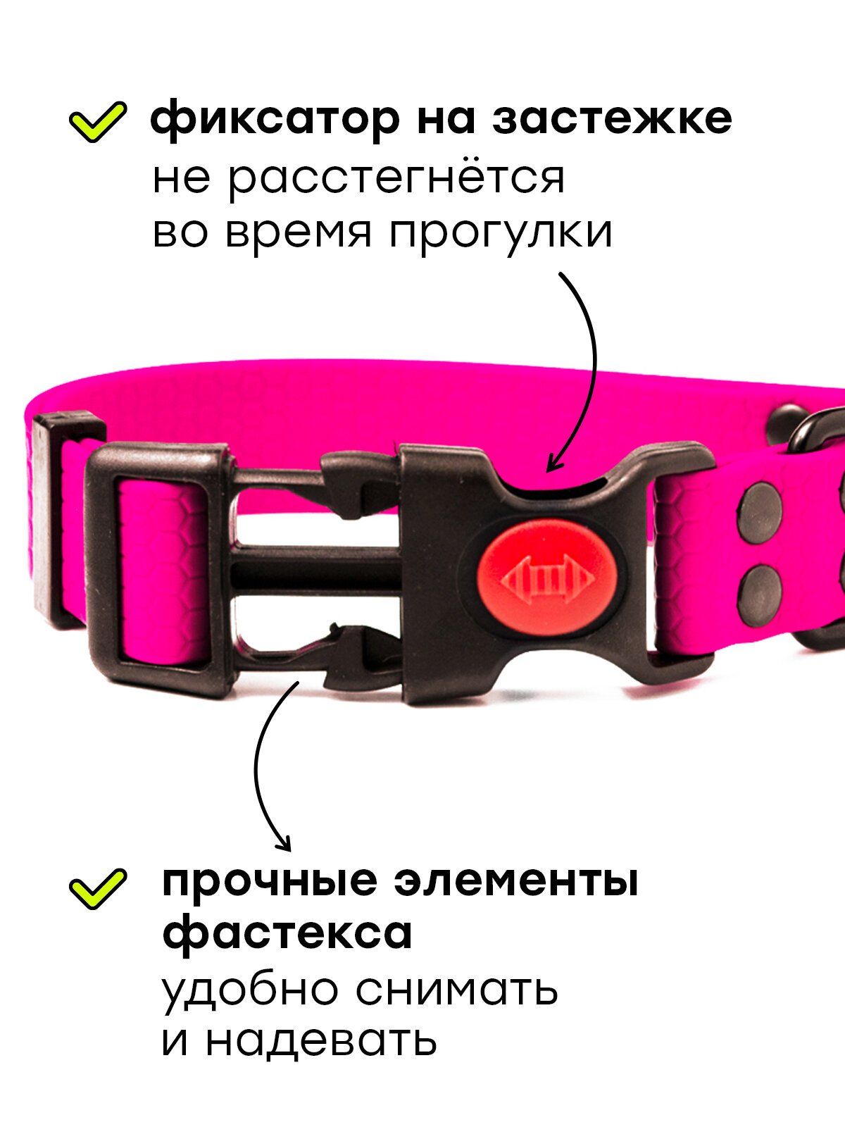 Ошейник из биотана 25-36 см (S), 20 мм, Woofy "Iron", водостойкий, для небольших и средних собак, розовый интересное:
