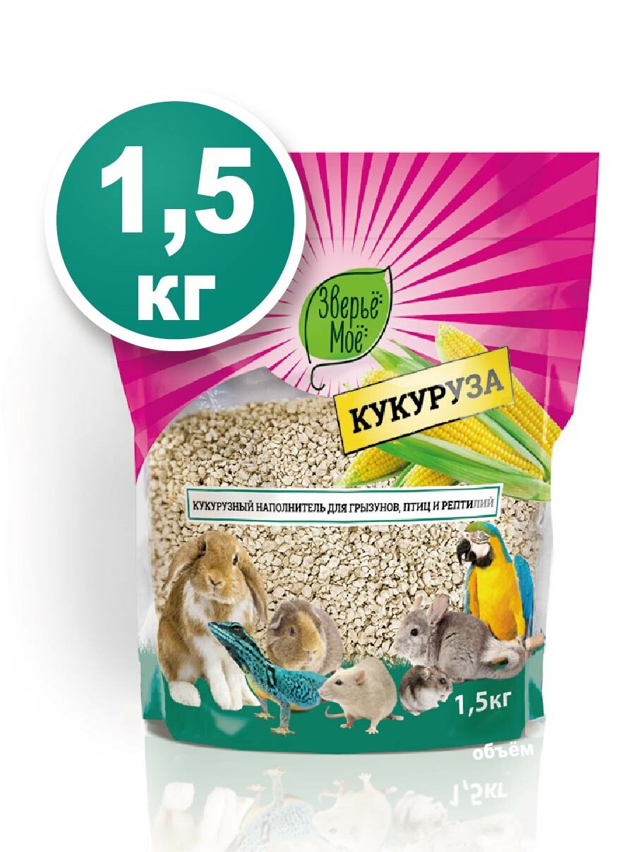 Наполнитель "Зверьё Моё" кукурузный, для грызунов, птиц, рептилий 1,5кг