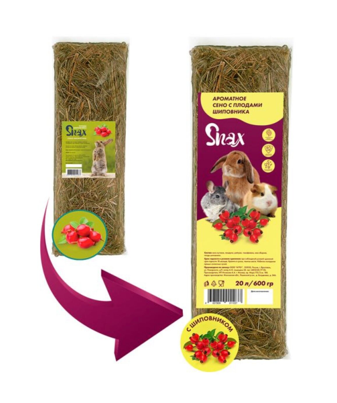 Сено Snax ароматное для грызунов, плоды шиповника 600г (20л) х 3 упаковки интересное: