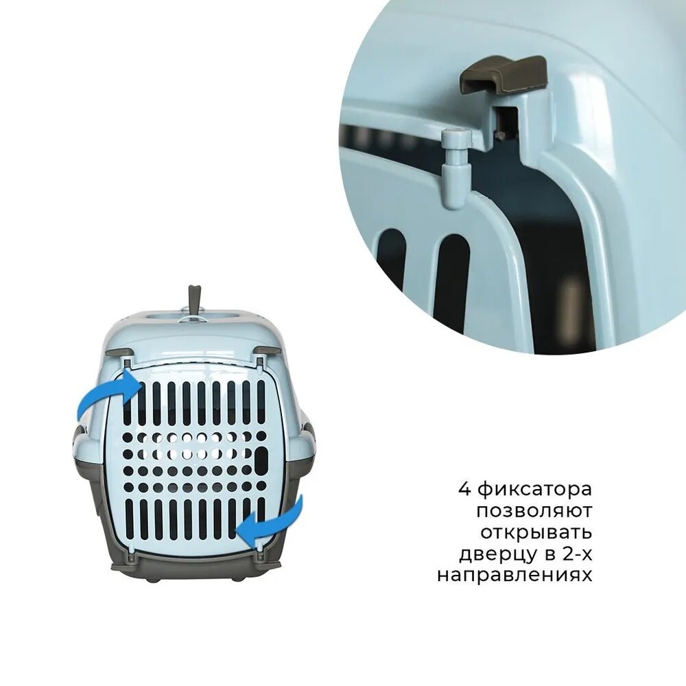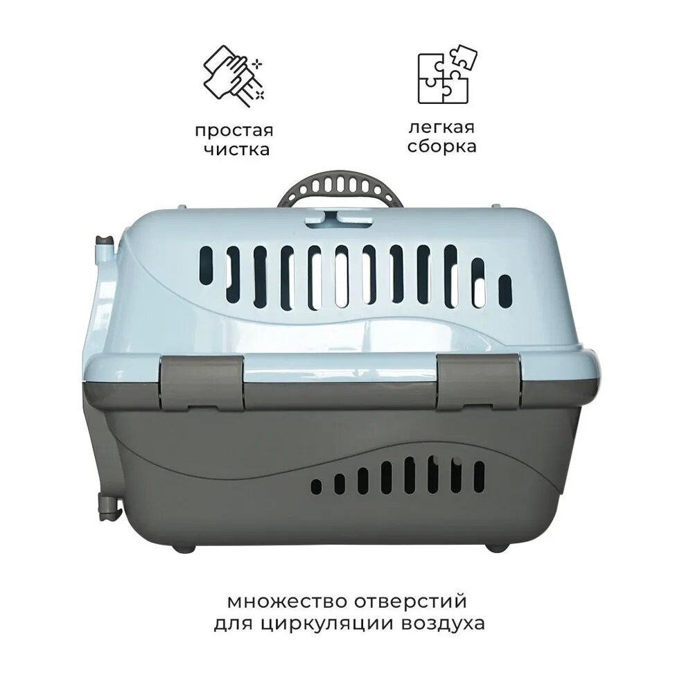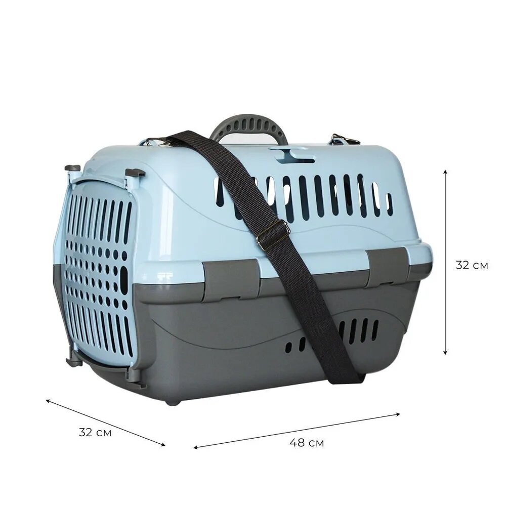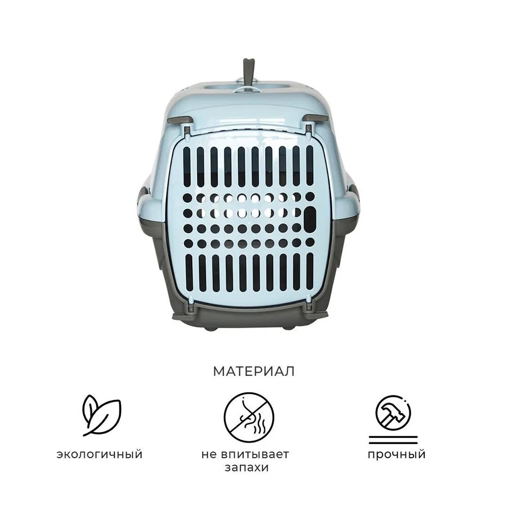 Купить Переноска для животных Zooexpress Турне M с пластиковой дверцей (коврик + ремень) 48*32*32 см голубая