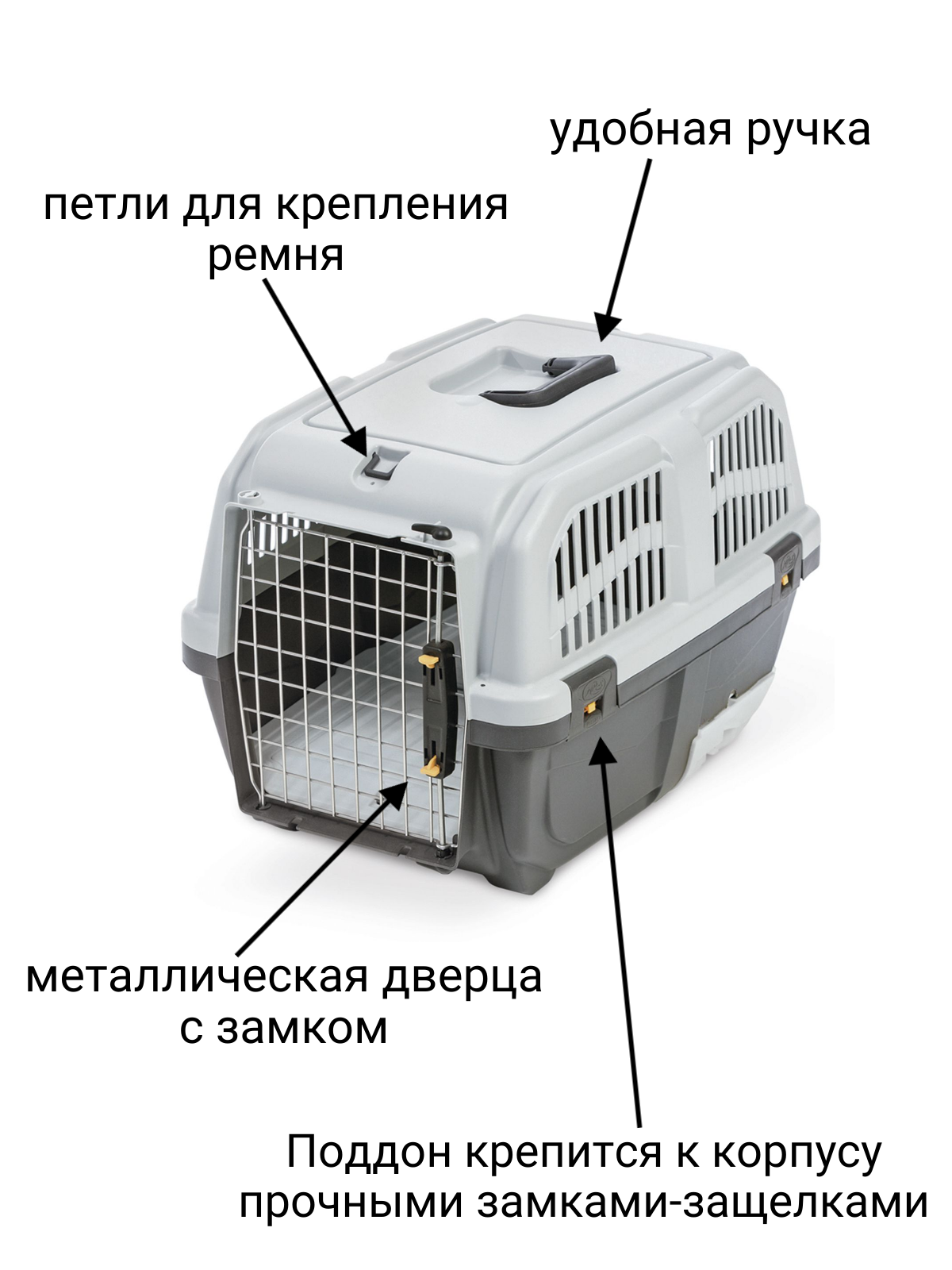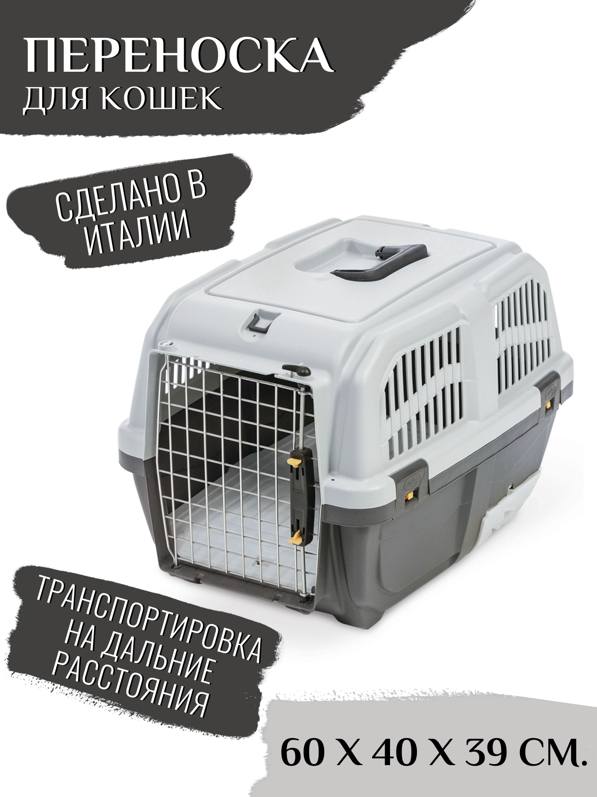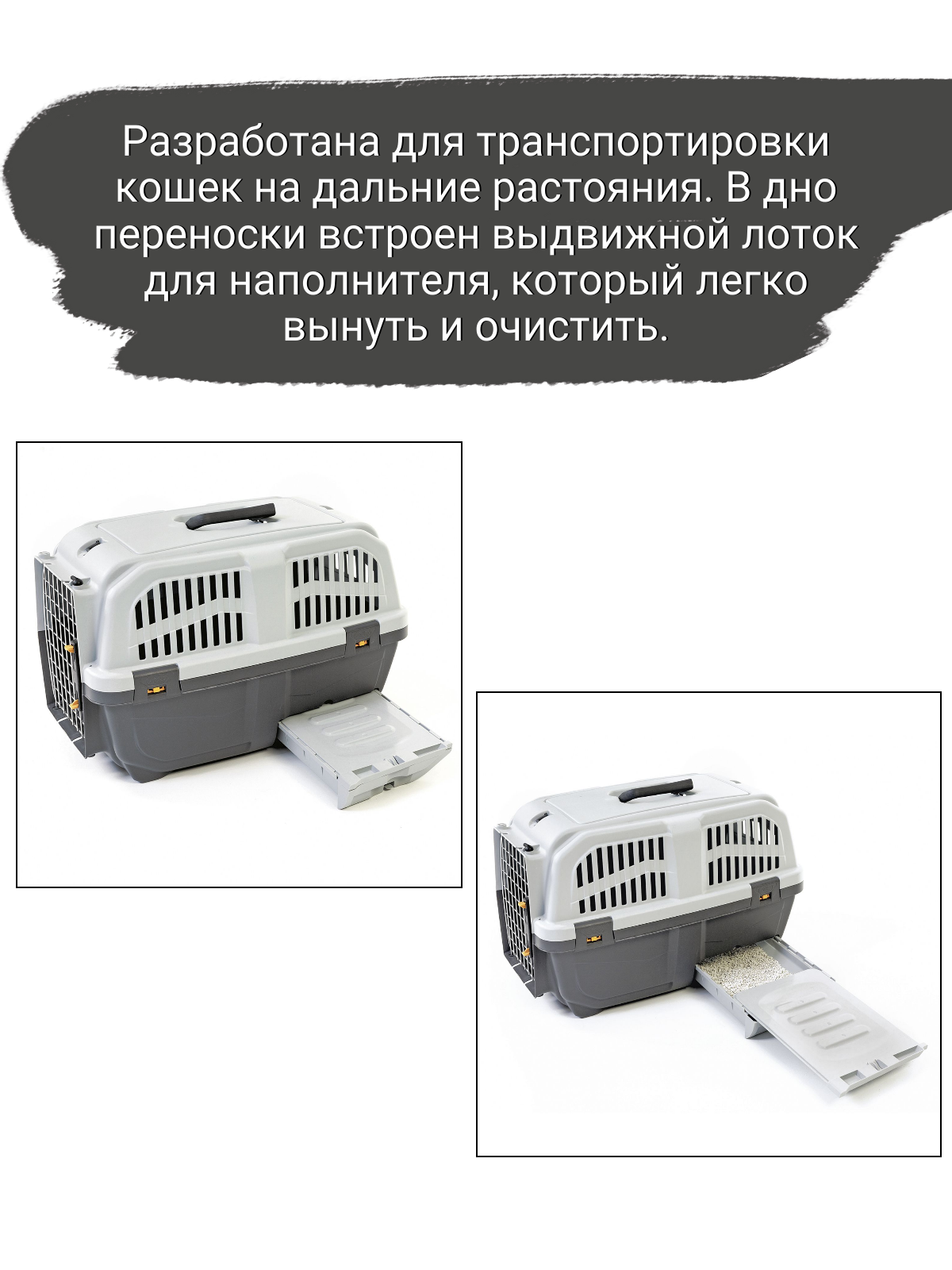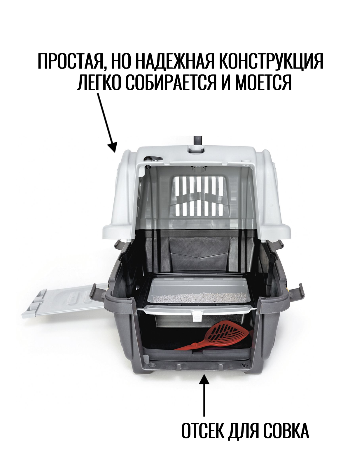 Переноска Mps SKUDO CAT TRAVEL с лотком для наполнителя серая, 60x40x39 см интересное: