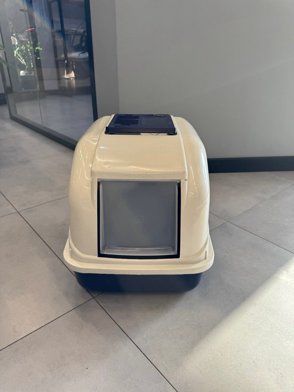 Закрытый лоток для кошачьего туалета с совком, угольным фильтром и пакетом "Чистый котик" 57х44х40 см