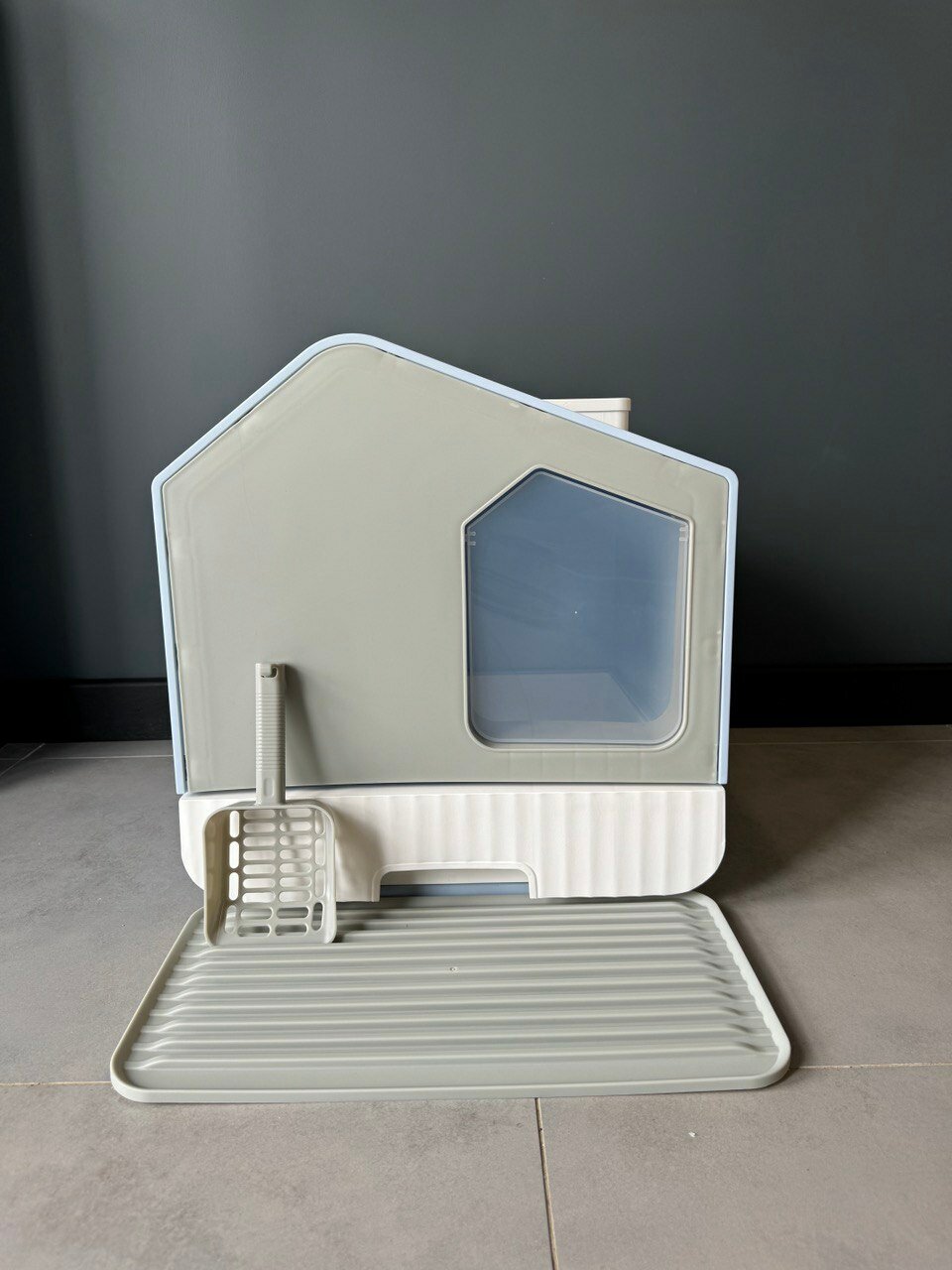Закрытый лоток для кошек "Чистый Котик" поддон,коврик,совок,серый,пластик 43,7x40,2x45,2см