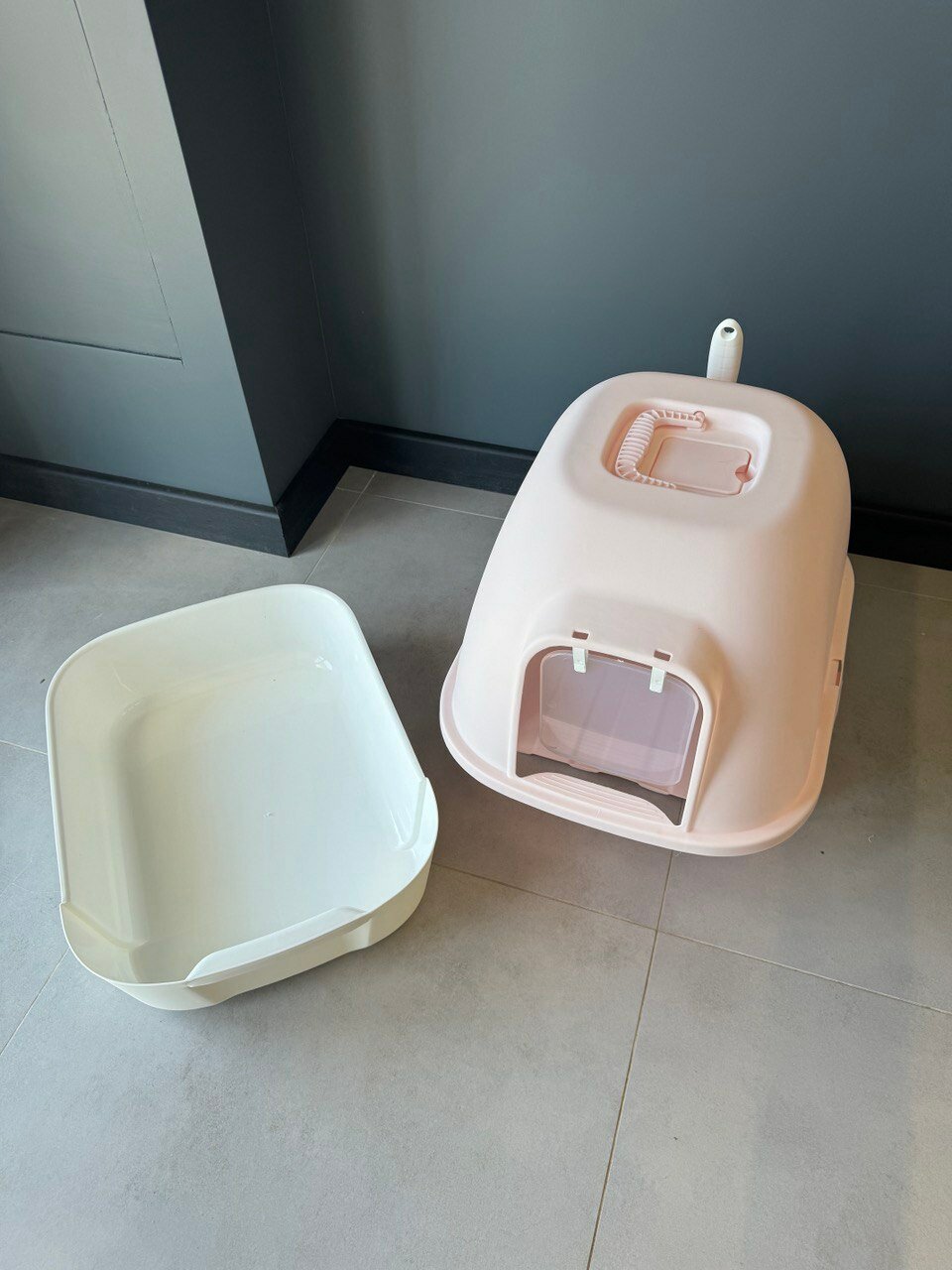 Закрытый лоток для кошек "Чистый Котик" поддон,коврик,совок,серый,пластик 43,7x40,2x45,2см
